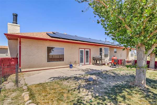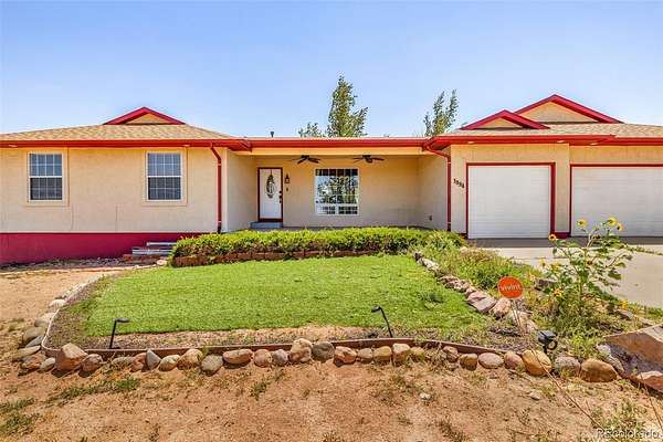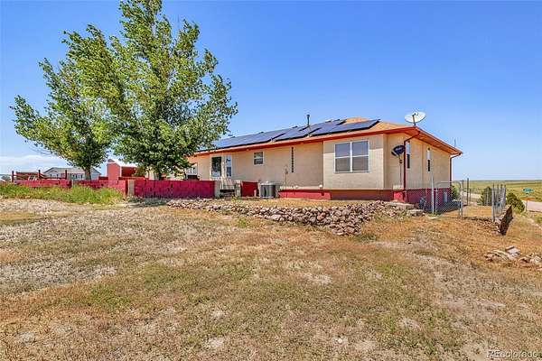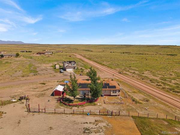 Don't miss out on this ranch-style home situated on a 2-acre horse property in Pueblo West. Breathtaking mountain views enhance the appeal of this property. Enjoy the comforts of this well-appointed 5 bed 3 Bath home featuring solar energy system. The gourmet kitchen boasts elegant granite countertops, a gas stove, and ample pantry space for all your culinary needs. Retreat to the inviting primary suite, complete with a walk-in closet and a spa-like shower. The finished basement provides versatility with extra rooms and a storage area. The home is also equipped with a humidifier. You will appreciate the oversized 3-car garage, which includes a dedicated work area and cabinets for organization. The landscaped property features drip system, ensuring easy maintenance and lush surroundings. The equestrian facilities include a barn with 3 open stalls, a tack room, and a hay storage area. The corral is equipped with a water hydrant and electric outlet for your electric water trough to keep water from freezing in the winter for added convenience. Additionally, there is a a dog run, 20x10 shed with electricity and a 6x10 shed, providing ample storage space for outdoor equipment. Other notable features of this home include built-in speakers in the family room, under cabinet lighting in the kitchen, and a convenient lazy Susan. Embrace a greener future and enjoy the benefits of renewable energy. Easy access to I-25 for commuting!