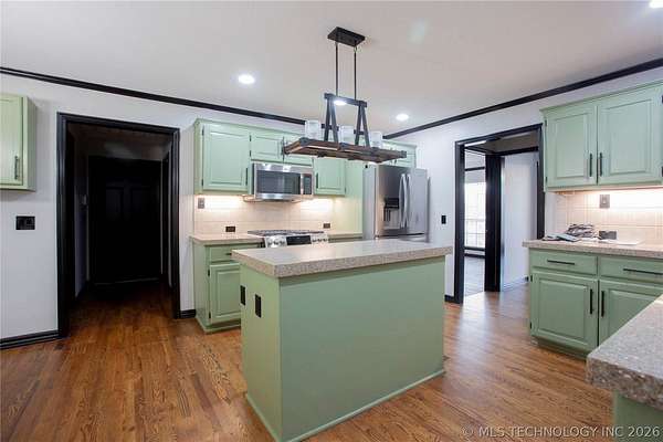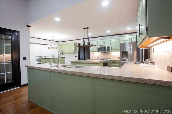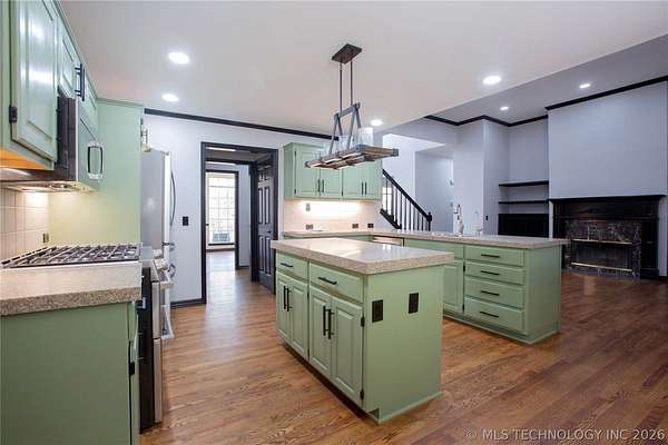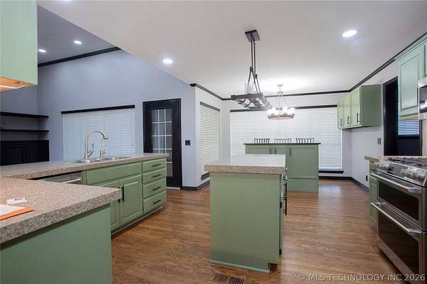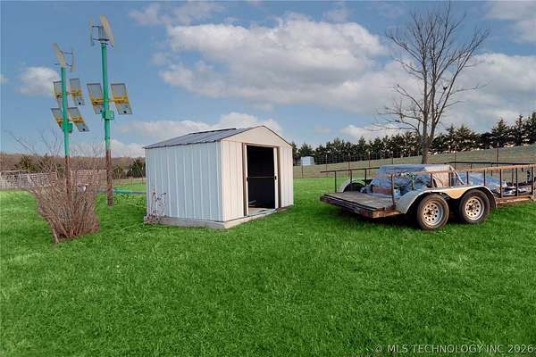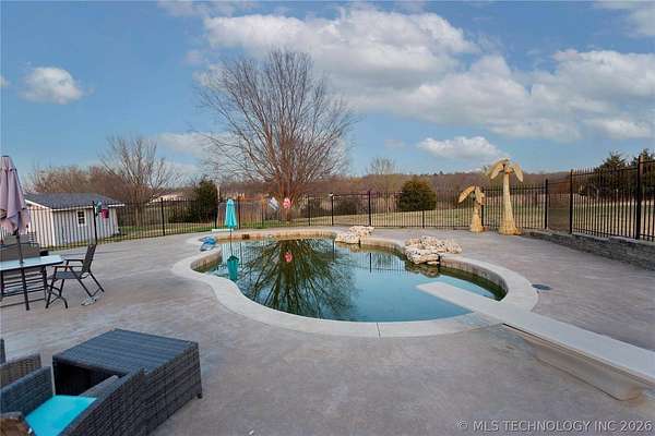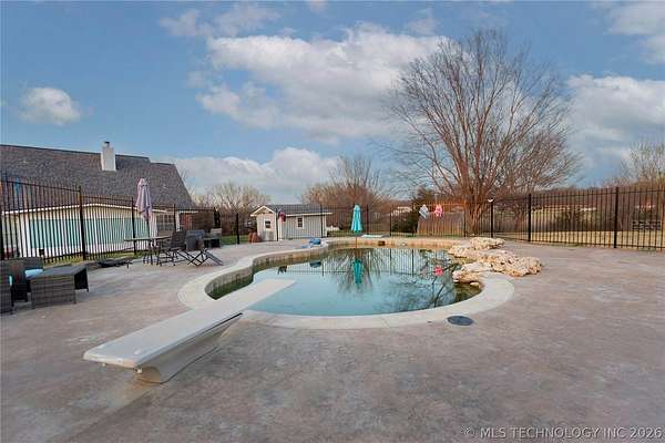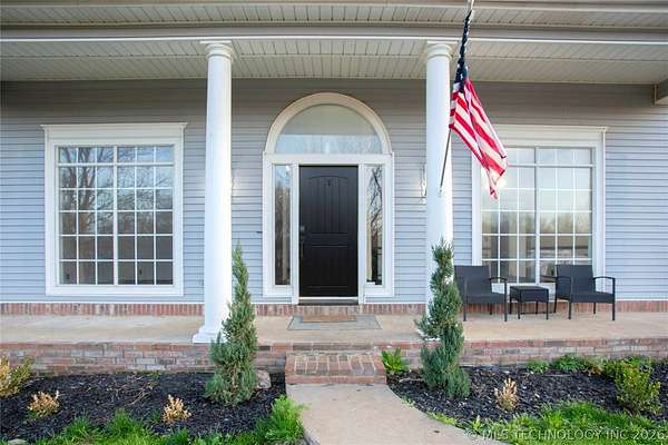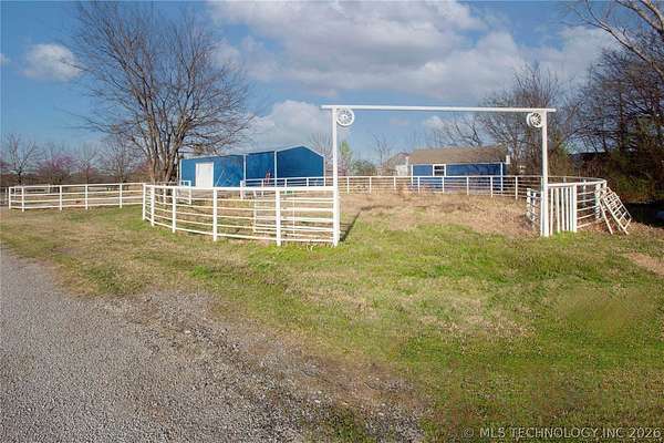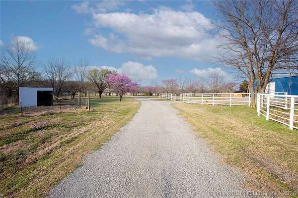 MOVE IN READY! Beautifully updated Sapulpa home on 10 acres with a pond, 30x50 shop, and a separate 1-bedroom, 1-bath guest house. The main home offers 4 bedrooms, 3 full baths, and a 3-car garage and has been meticulously cared for. Recent updates include new paint, flooring, lighting, hardware, matching electrical, spray-foam insulated attic, water softener, and a newly installed storm cellar. The inviting living room features a cozy fireplace with built-ins, a wall of windows, and opens to the kitchen. The chef's kitchen boasts granite countertops, stainless appliances, new island, extended cabinetry, pantry, breakfast area, and a formal dining room. A private office includes new doors and a ceiling fan. The first-floor primary suite features a tray ceiling, double sinks, whirlpool tub, separate shower, and two large walk-in closets. Two additional bedrooms are also located on the main level. Upstairs offers a large game or theater room, an additional bedroom with private bath, and a huge workout room or oversized closet. The Florida room with new thermal heat shades overlooks the backyard and is ideal for entertaining. Enjoy the heated saltwater Gunite pool with diving board, new fence, and two water features, installed by Baker Pools. The property is fully set up for animals with fenced pasture, corral, stable, greenhouse, dog run, fenced garden area, fruit trees and berries, multiple storage buildings with electric, and a large pond. Other features include well water with a treatment system and an easy switch to city water, solar-powered automatic gate, and a new chip-and-seal driveway from the highway to the home. Easy highway access and less than 15 minutes to Tulsa. Schedule your showing today! ACCEPTING OFFERS!