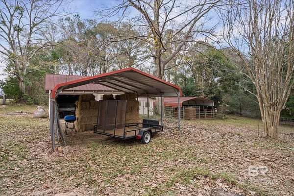 Discover space, privacy, and opportunity with this 3-bedroom, 2 bath home situated on approximately 6.84 acres in the heart of Robertsdale. The expansive acreage offers flexibility for future use, expansion, or investment. Whether you're seeking room to grow or a peaceful place to unwind, this property provides both comfort and potential. Central HVAC was installed in 2022. Also, two metal carports and an outbuilding for storage is included. A majority of the acreage is fenced and suitable for horses. The metal roof is approximately 6-8 years old. Conveniently located about one mile from local arena and centrally located near the beaches, Baldwin Beach Express, I-10, shopping, and dining. Buyer to verify all information during due diligence.