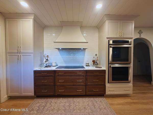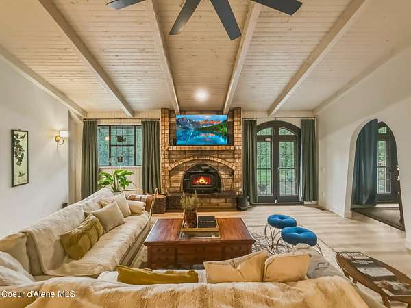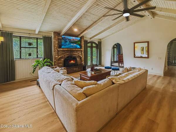 Come discover for yourself this custom gem in Hayden. Located in the coveted Lancaster corridor on Rimrock-perfectly situated on 3.02 private acres. This expansive home mixes old world charm & modern taste. Arches, beams, stained glass, stone fireplaces-this home has it, and more. 4 bedrooms on main level, & master suite tucked away on 3rd level. Fully renovated kitchen featuring Thermador appliances. Formal dining room, office, additional family room on main level. In lower level you'll find media room,gym,walk-in cold storage space, & oversized double garage. Outside you'll feel North Idaho lifestyle greeting you-a seasonal creek, winding trails, zipline, greenhouse, custom clubhouse, & shop. You won't find another home like this one-see it soon. Eligible VA assumable loan.