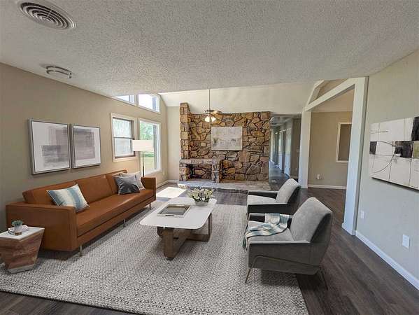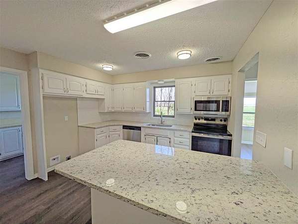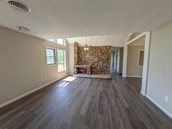 This updated home on acreage showcases a durable stone exterior. A detached two-car garage provides vehicle storage, complemented by a large outbuilding measuring approx. 30'x24'. This substantial structure contains a third garage bay and an unique sky observation area with a sliding roof. The laundry room includes a hanging rod and counter space for convenience. Two sunrooms create additional versatile spaces. The kitchen showcases a breakfast bar and granite countertops paired with stainless steel appliances. These features combine to offer both practical storage solutions and comfortable living spaces, all situated on approx. 6.57 acres! Contact us today to schedule a viewing! This is a Fannie Mae HomePath property. First Time Buyers, complete the HomePath Ready Buyer homeownership course on Homepath.com. Attach certificate to offer up to 3% closing cost assistance. Check HomePath.com for more details. Restrictions apply. Some images in this listing have been virtually staged.