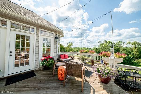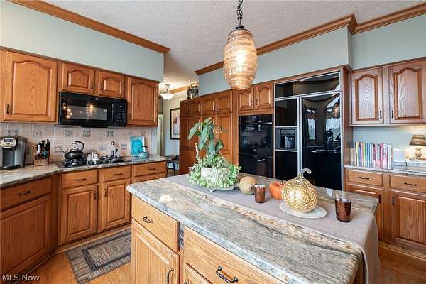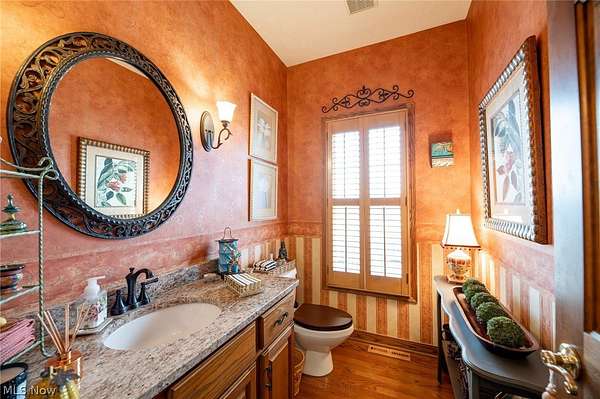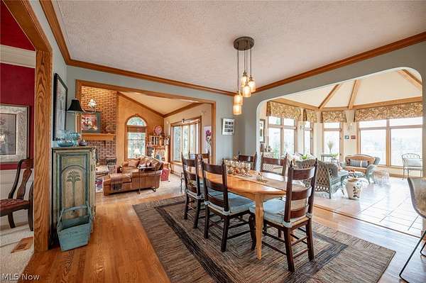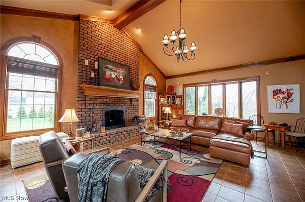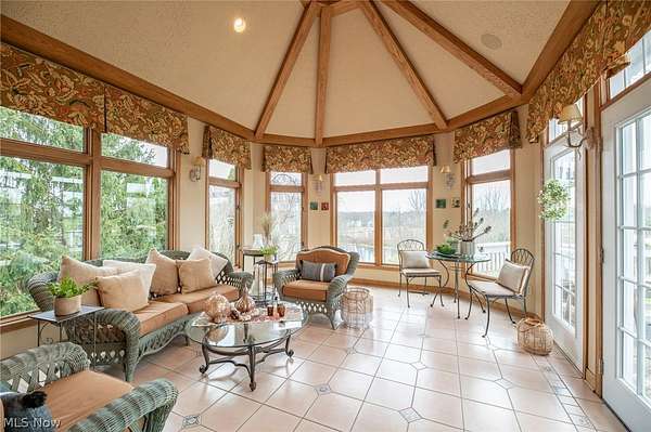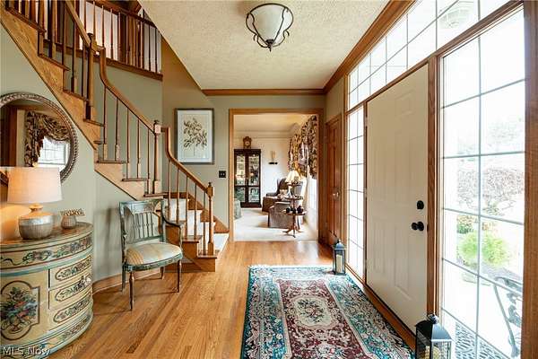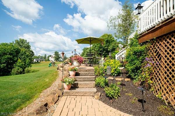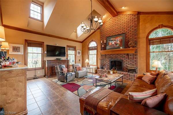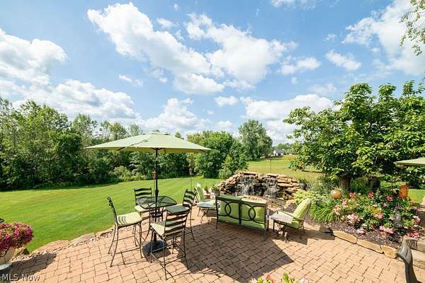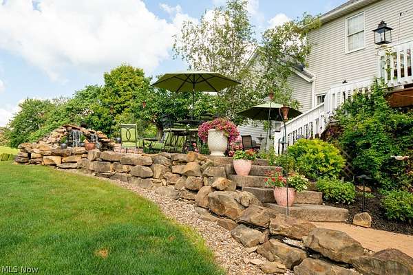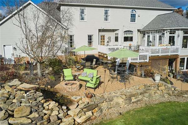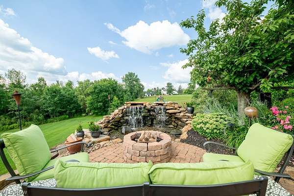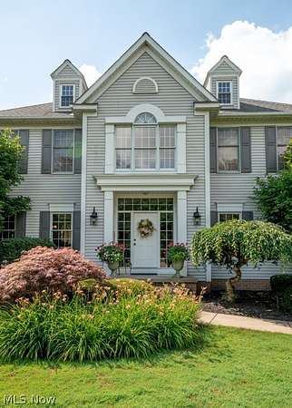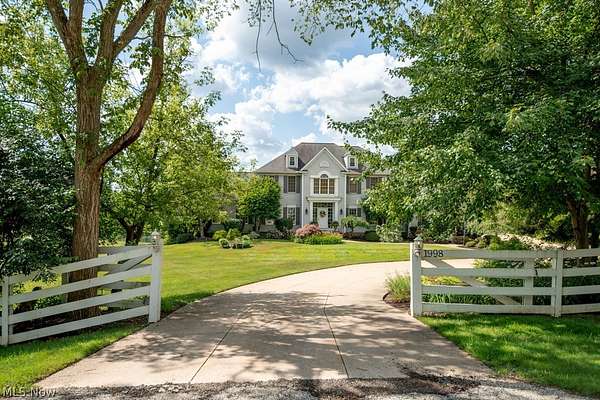 A private sanctuary with engaging entertainment spaces is what you will find as you pass through the white rail fencing to experience this glorious Custom Prestige Colonial. Enchanting, lush gardens and professional landscaping offer a warm welcome. Enter through the stately front door into a beautiful foyer revealing glimpses of elegance within. The formal living and dining rooms feature 9-foot ceilings, crown molding, and large windows that bathe the space in light. The expansive eat-in kitchen truly feels like home, boasting a breakfast bar, granite countertops, a center island, abundant cabinetry and expansive windows. Step down into the vaulted family room, highlighted by windowed dormers and a floor-to-ceiling brick wood burning fireplace. The two-level garden room addition with terracotta floors, surrounds you with sunlight and panoramic views, offering seamless access to the deck overlooking your two-acre estate. The main floor also hosts an office, a large half bath, laundry room, and three-car garage access. Upstairs, the primary suite features a private sitting room, large bathroom with travertine shower, floor and soaking tub, and walk-in closet. Two additional bedrooms each include bathrooms and generous walk-in closet spaces. The lower level is a versatile retreat with a media room, gym or playroom, additional bedroom, and full bathroom, plus a recreation room and solarium with terracotta floors and easy access to the outdoors. The focal point of the outdoor patio is a stunning stone waterfall, with a firepit and ample room for dining and socializing. Enjoy sidewalks to Downtown Hudson's premier shopping, dining, and a 5-star Library!
