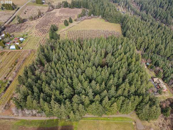 This exceptional 10-acre parcel on the coveted Chehalem Mountain with a rare opportunity to build your luxury custom home, surrounded by scenic mountain and valley views. Gently sloping and square in shape, the land provides the perfect canvas for creating a private estate, with ample space for your dream home. The property features a deep well, electric, and septic already in place, allowing you to seamlessly begin building without the hassle of utilities. The existing manufactured home holds no value, providing an ideal opportunity to replace it with a stunning, custom-designed residence that perfectly complements the natural beauty of the land. With the current forest deferral in place, the property enjoys lower property taxes, making it an even more attractive investment as well as the potential for marketable timber. Nestled amidst the rolling hills of vineyards and farms, this parcel offers the best of both worlds: peaceful country living with easy access to the vibrant cities of Sherwood, Newberg, Beaverton, and Hillsboro. Nearby luxury homes and estates set the tone for what could be built here, a true masterpiece designed to take full advantage of the breathtaking views, privacy, and natural beauty. For the discerning buyer or custom home builder, this is an exceptional opportunity to create the estate of your dreams, with the potential for panoramic "picture-frame" mountain views, all while enjoying the serenity of a private, wooded setting. Buyer is responsible for conducting all necessary due diligence with the county regarding land use, zoning, permits, and any other legal or regulatory requirements. The seller makes no representations or warranties regarding the property's suitability for any specific use. Buyer is encouraged to verify all details and confirm that the property meets their intended needs.