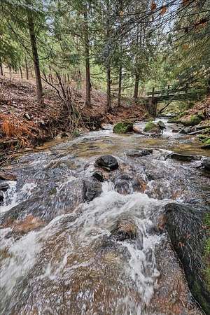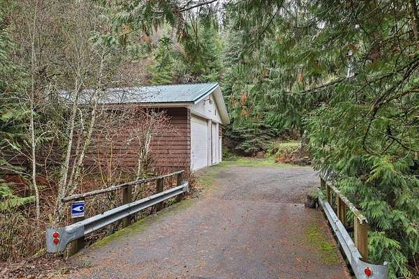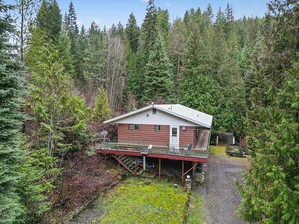 Nestled among towering evergreens and a year round stream, this cabin style retreat offers the privacy and rustic charm on almost 27 acres. Featuring 3 bedrooms, 2 bathrooms, and a 4+ car shop with plenty of parking to enjoy your own private mountain retreat. The main level includes two bedrooms, a bathroom, and a cozy family room with pellet stove and custom built-ins. Upstairs, the lodge inspired living space offers a spacious primary bedroom with walk in closet and bath ensuite. Granite countertops in the efficient kitchen with great dining layouts along with a large family room anchored by a wood-burning fireplace. As an additional bonus, the sauna enhances the authentic cabin feel. Relax on the wraparound porch while listening to flowing creeks. The land features private walking and horse trails, a secluded riding arena, and partial fencing for livestock. Owner financing options available!