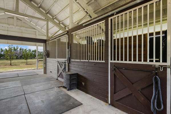 Nestled at the end of a quiet cul-de-sac in the equestrian community of Deer Run, this fully fenced 5-acre property offers a perfect blend of privacy, functionality, and timeless style. The 4 bedroom, 3 bath CBS home showcases British West Indies/Colonial design and includes a 2 car garage. The tree lined property has direct access to miles of riding trails via the bridle path just behind the property. The barn, built in 2020, features 4 matted 12x12 stalls, tack room, feed room, and fly spray system. Two open paddocks provide ample space for turnout. Generous land to build additional buildings or convert the current barn. The HOA also allows covered arenas, allowing for riding all year long.