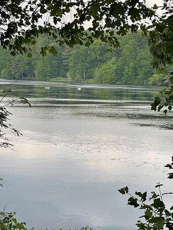 Lot entrance and sign next to 140 Elm Street. Between 49 & 55 Pond St Thickly wooded not good access
