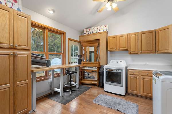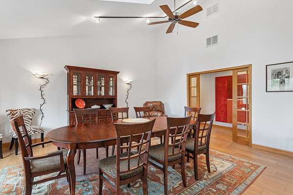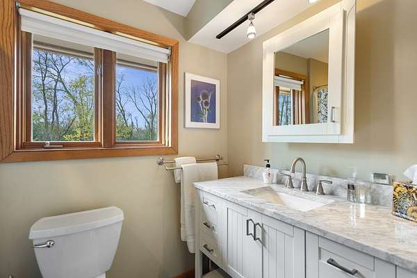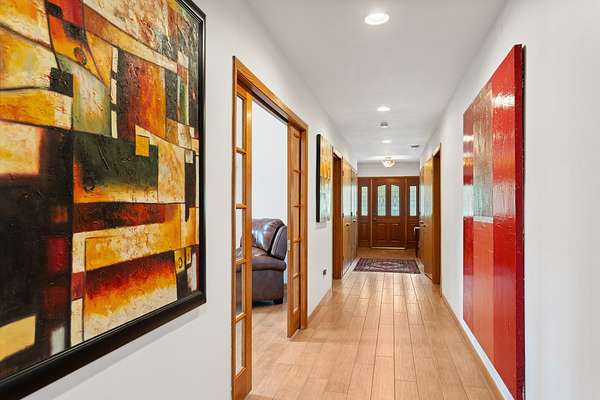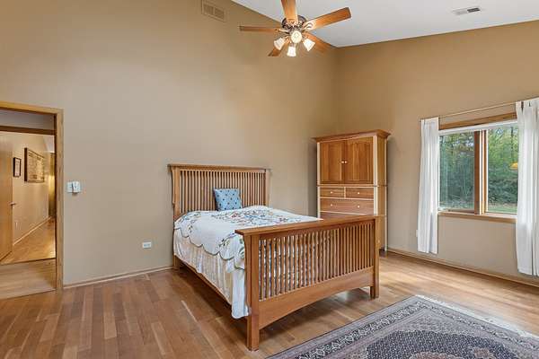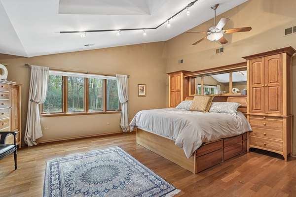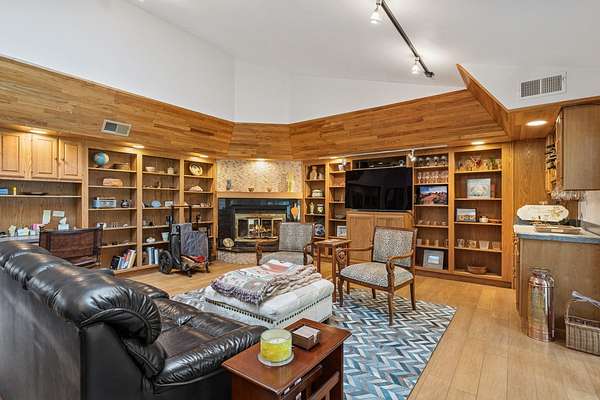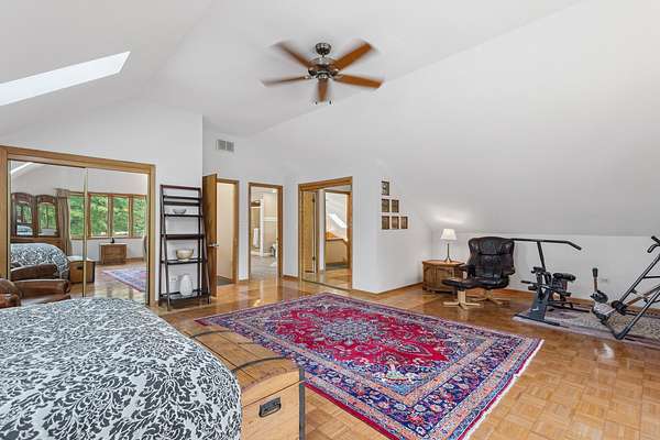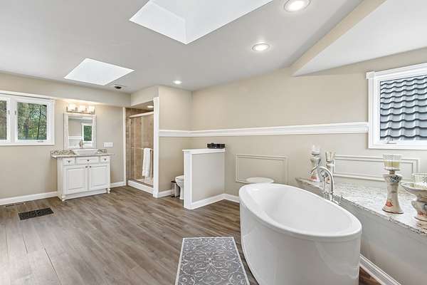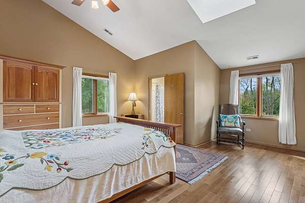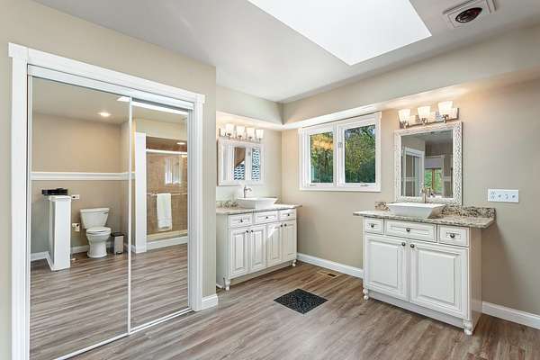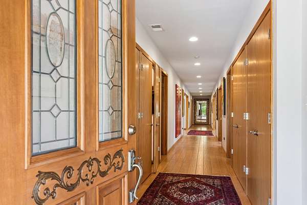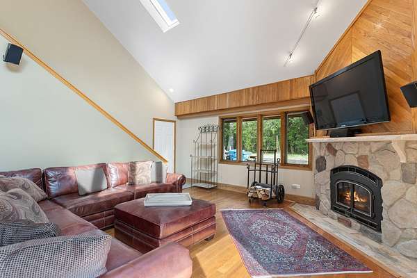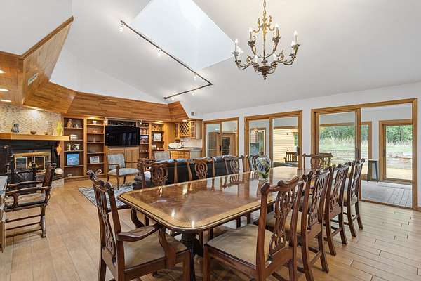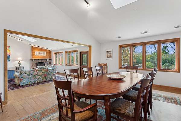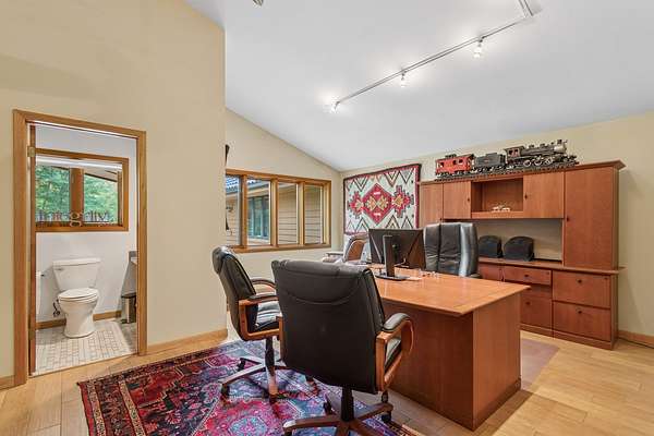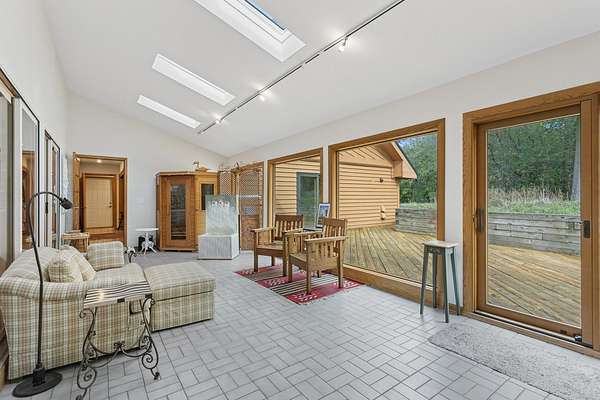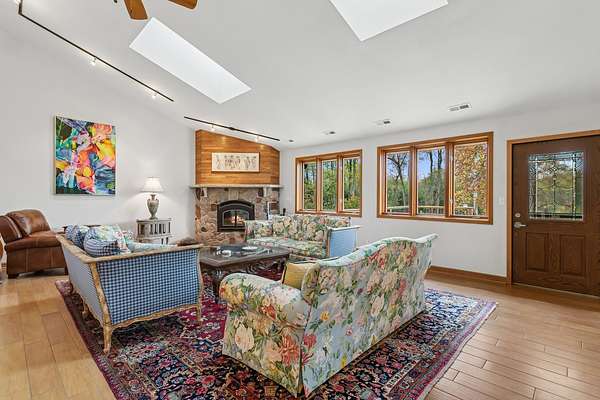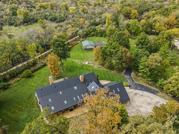 Welcome to this extraordinary one of a kind Ranch home in the peaceful sanctuary of Northwoods. Featuring 5 bedrooms, 5.2 baths and over 6000 square feet of mostly single level living space, and resting on 1.6 acres of tree-lined beauty, this property is the epitome of attention to detail at every turn. Property is set back on a long private road. Starting with the massive high-end steel roof and layer upon layer of wall insulation, this home is as rock solid and efficient as you'll ever see. Vaulted ceilings and an abundance of skylights and windows provide loads of natural light and sense of space. The thoughtful open floorplan keeps the gourmet kitchen and surrounding gathering areas as the focal point. Each room boasts gorgeous wood-look porcelain tile floors, all of which are heated, as is the entirety of the flooring in the home except for the laundry area. An adjacent sunroom overlooks one of the two sizable wood decks, east-facing to capture morning light. There are 4 oversized main level bedrooms, each with their own bath, divided over 2 wings of the home, including an awesome master ensuite w/oversized walk in closet. Also, don't look past the impressive and soaring great room with a full 2nd kitchen, fireplace, media area and deck access. The vast upstairs 5th bedroom directly up could be the MBR suite, with it's stunning spa-like bathroom. Taken together it could be a perfect in-law arrangement or even a rental possibility. Bring your car collection, there's a 4 car attached temperature controlled garage plus an oversized shed that comfortably accommodates 3 more cars and plenty extra. There are far too many features of this impressive home to list here. Meticulously maintained, impeccable quality, you cannot replicate this home anywhere close to this price. Truly a must see.