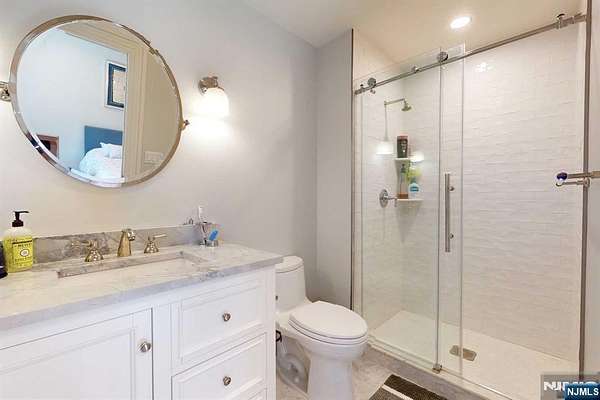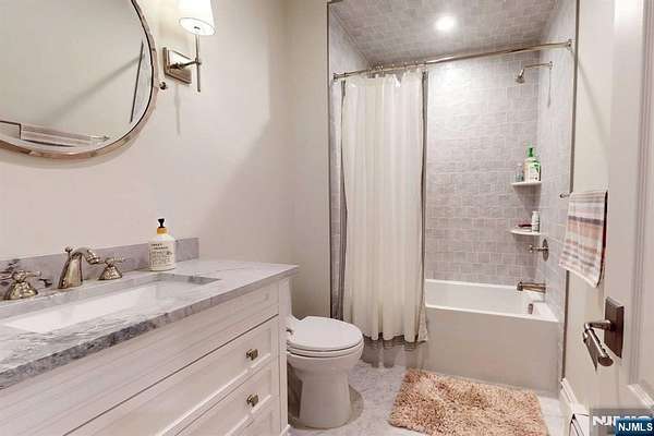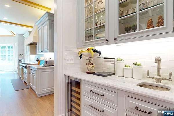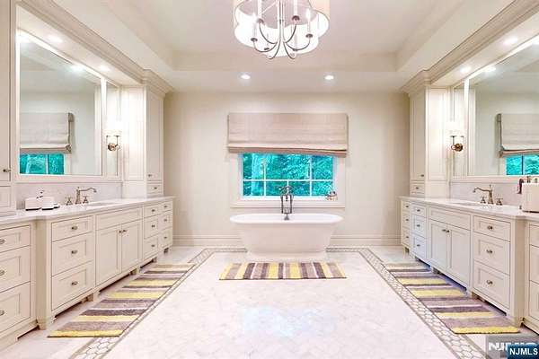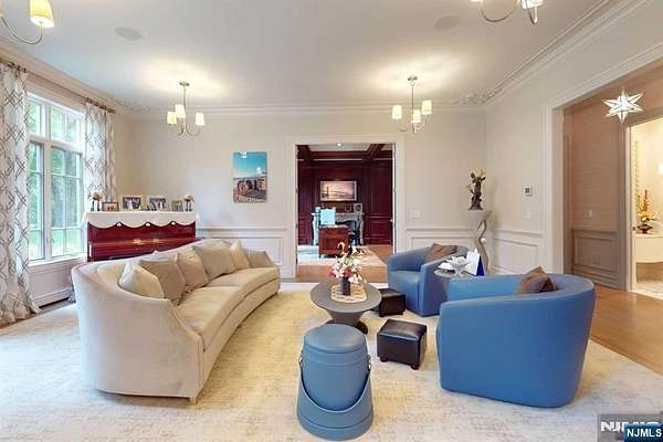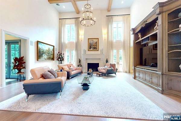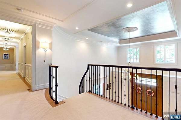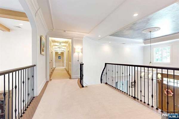Gorgeous brick manor colonial located on Saddle River's premier street. Circular driveway leads you to this stately home. Upon entry into the two story marble foyer, you will see the spectacular curved staircase with balcony overlooking the two story great room. Meticulously chosen paint, cabinet, and floor colors in the social spaces where you will be entertaining your guests. Living room, dining room, magnificent kitchen with quartz island and Hestan appliances. Magnificent molding and built-ins throughout. Completing the first floor are guest bedroom, full bath and laundry. Upstairs is an extravagant primary suite complete with full bath, 2 walk-in closets, and sitting room. Four additional en-suite second floor bedrooms. Second staircase leads to a newly finished basement with den, full bath, golf practice range, gym, and storage. Stunning property with outdoor entertainment, patios, heated gunite pool, spa, kitchen. Newly updated security system. Not to be missed!