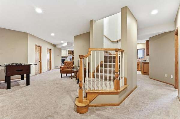 Upstairs, the owner’s suite boasts a spa-like bath and huge walk-in closet, plus two additional bedrooms, a full bath, and laundry. The lower level offers a fourth bedroom with en-suite, family room with gas fireplace, wet bar, and billiard room.