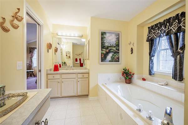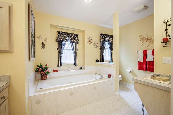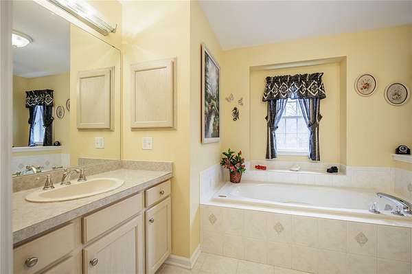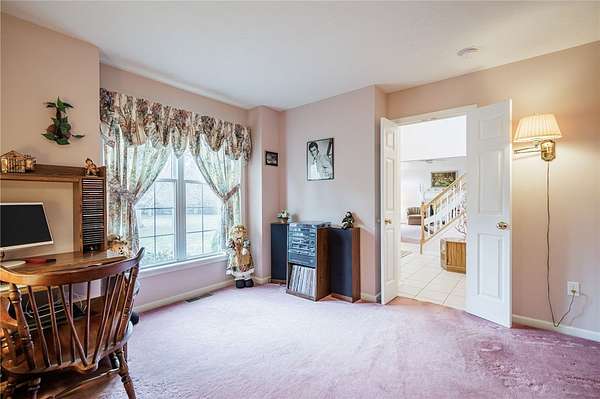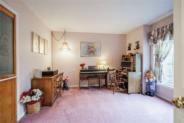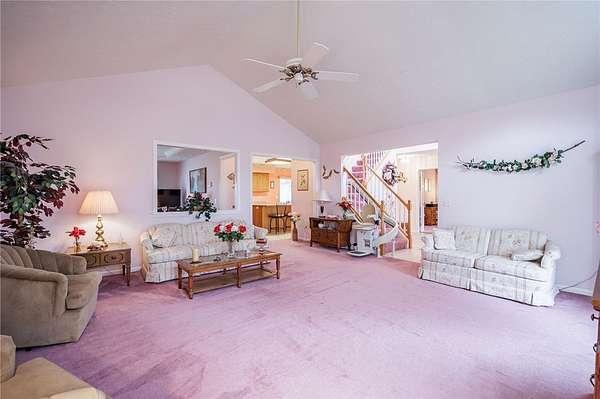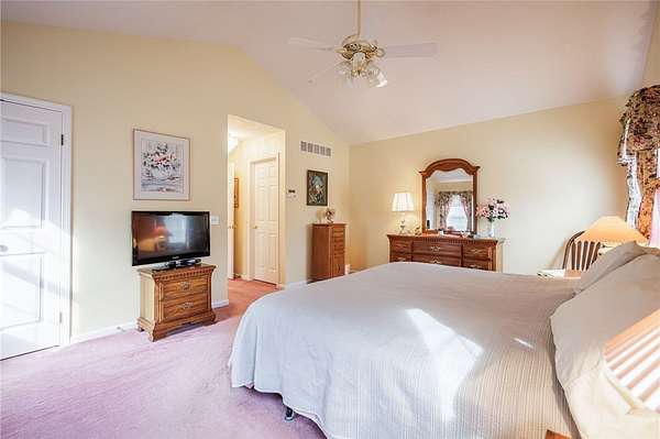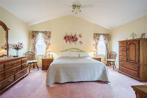 - Bath In Primary Bedroom, Cathedral Ceilings, Ceiling Fans, Eat In Kitchen, Entrance Foyer, Home Office, Kitchen Island, Pantry, Programmable Thermostat, Separate Formal Dining Room, Separate Formal Living Room, Sliding Glass Doors, Solid Surface Counters, Window Treatments