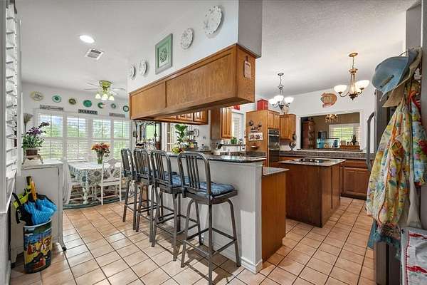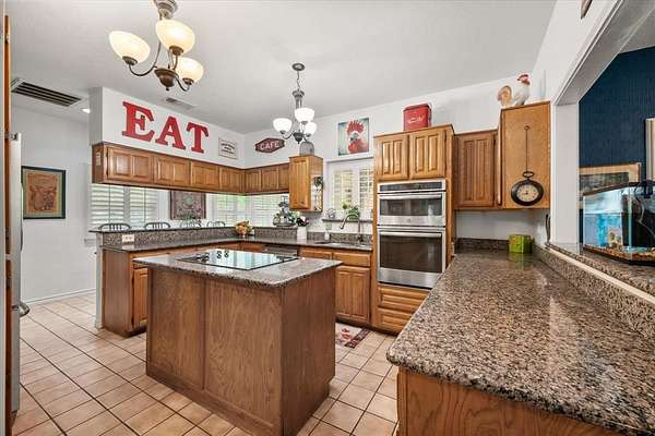 The kitchen is built for serious cooking with a central island, double oven, new cooktop, new dishwasher, and granite counters. The layout moves well, with a natural flow between the kitchen, living areas, and outdoors that suits both quiet mornings and full gatherings equally.
