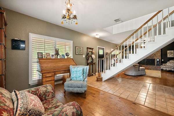 A covered wraparound porch, multiple living areas, and a stone outdoor patio with covered pergola mean there is always somewhere to be. New roof installed August 2025. Energy efficient windows throughout keep the home light-filled and comfortable year round.