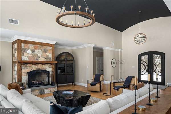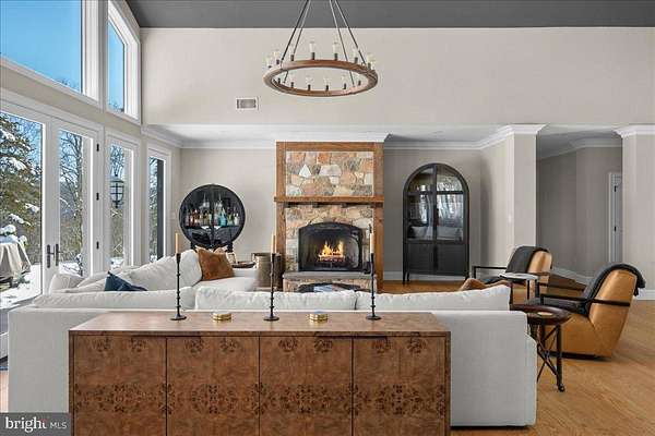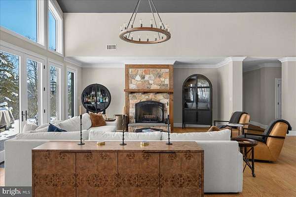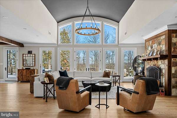 Set at the end of a private lane, the long meandering driveway flanked by mature trees in a rustic landscape is "Cedar Hill Reserve". This one of a kind custom built home has panoramic views above the Delaware river and sweeping uninterrupted sightlines for miles across the rich rolling landscapes of Bucks and Hunterdon counties. Enter through the front door and your eyes are immediately drawn the two story bank of French doors & windows framing the bucolic setting. The large open floor plan combines comfortable living space with a sophisticated chef style kitchen, large island, plumbed antique worktop coffee station and two tier stone stacked wood burning fireplace. The formal dining room, with custom millwork is just steps from the kitchen and offers plenty of room for guests and a bank of windows overlooking the lush tree line. The main floor continues with an expansive home office surrounded by built in book shelves and work station with views of the river. The master suite is an oasis with multiple custom finished walk-in closets, sumptuous master bath, vaulted ceiling and French doors that open to a private deck for morning coffee or evenings counting the stars. There are two more generous en-suites on the main floor and a great view from any window. The two story wing of this estate style home provides a full suite for guests with ample room for storage and possible additional finished space. There is a three car attached and a brand new three car detached garage with electric and water plumbed in. The sunny backyard is a recreational retreat with an in-ground pool & pool house overlooking the river valley and heated tree house with wrap around deck with views across the neighboring vineyard and miles across the river. The timeless mature landscape completely surrounds the sleek & sophisticated country home. Just a short drive to New Hope, Frenchtown, Easton and well within commuting distance to NYC. Schedule your private tour today!