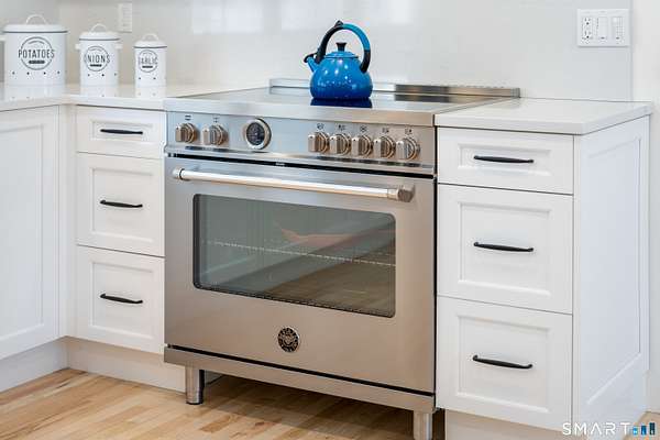 Modern Sophistication, Timeless Location: Your Private Westport Retreat. Nestled on a private cul-de-sac and bordered by 7 acres of protected land trust, this modern masterpiece offers over 3,000 sq. ft. of luxury and peace of mind. The property is ideally situated in the historic Charcoal Hill area, a neighborhood famed for its architectural heritage and Frazier Peters-designed estates. The striking exterior features double-hung Marvin windows, leading into a light-filled interior with 3 bedrooms and 3 baths. At the heart of the home is an expansive open living area and a chef's kitchen featuring Bertazzoni, while the home's refined aesthetic is complemented throughout by Kohler, Hansgrohe, and Robern. Versatility defines the floor plan, transitioning to a finished lower level that features an additional fireplaced living area and flexible rooms perfect for a home office, gym, or guest suite. A Smart Home system for lighting and climate control ensures modern convenience is always at your fingertips. Enjoy ultimate privacy on the porch or patio overlooking a gentle running brook and stunning sunset views. Meticulously maintained with a newer roof (approx. 6 yrs), new Hardie Board, and new gutters, this home offers a "like-new" experience. Located in the desirable Coleytown area, just minutes from schools, world-class Westport shopping, and commuter routes, it is a true sanctuary of modern design.