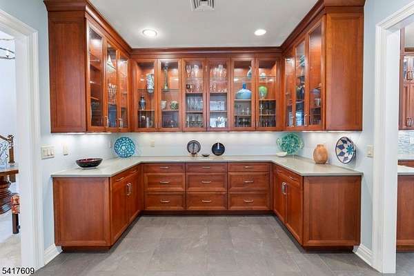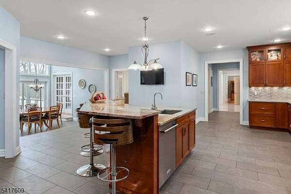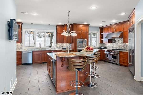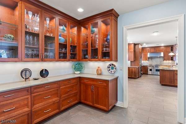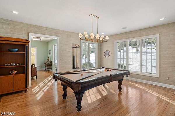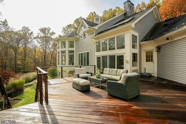 Fabulous custom-built estate set on over 6 breathtaking, private acres boasting a pond & a stream, tucked away on a quiet, tree-lined street. Featuring a 1st floor living option, this exceptional 7,000+ sq/ft home blends timeless craftsmanship w/ modern updates & refined luxury. Featuring 4 spacious ensuite bedrooms & 6.1 baths, the residence offers flexible living spaces designed for both grand entertaining & everyday comfort. Four fireplaces, 2-story ceilings, French doors & floor to ceiling windows create warmth & architectural character throughout the gracious living spaces. The large, updated kitchen showcases high-end appliances & finishes while 4 beautifully renovated baths provide spa-like retreats. Other special features of the 1st floor include a beautiful butler's pantry & breakfast room, a game room, handsome office & bonus room leading to the 1st floor ensuite. Upstairs, the luxurious primary suite is a private sanctuary w/ its own fireplace, large sitting room & an updated bath designed for relaxation. The full finished walkout basement expands the living space & versatility w/ a large recreation area, 2 additional bonus rooms, 2 full baths, a kitchenette, wine cellar & exercise room ideal for guests or recreation. Outdoor living is equally impressive w/ a large Ipe deck overlooking the serene property, mature trees & peaceful water views. This remarkable estate offers privacy, elegance & unparalleled space in a truly stunning setting.