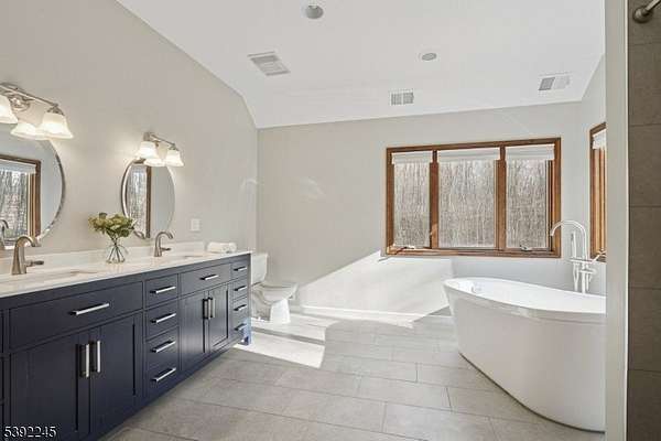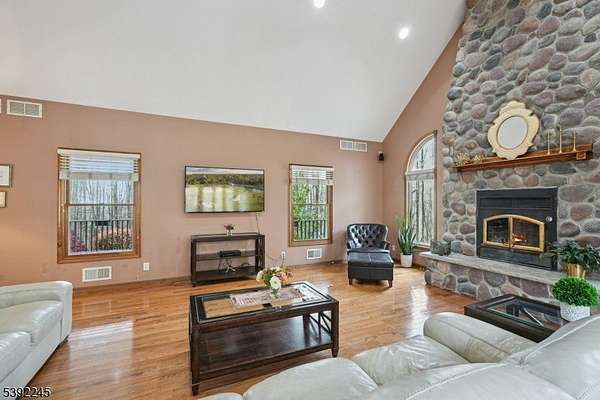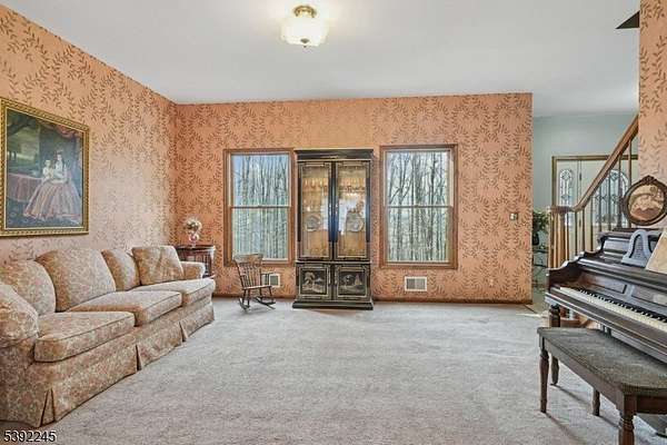 Private colonial home in beautiful Lebanon Township! This lovely home is located at the end of a long driveway off a private road. Enjoy nature from your welcoming rocking-chair front porch. Upon entering, you will be greeted by a large foyer with living room on one side and a bedroom/office on the other. The rear of this first floor has a large kitchen with center island and granite countertops. This overlooks your big great room with beautiful fireplace for warmth and comfort. The second floor has three bedrooms with large primary bedroom with tray ceiling. The primary bathroom is brand new and features a freestanding tub and separate shower. Upstairs is a home office which could be used as a bedroom instead of the one downstairs. The current owner uses a central boiler which decreases winter heating costs. The house is wired for a generator. The exterior offers a large deck and welcoming landscaping. Close to Lebanon Township schools, shopping, commuter routes 31 and 78, public transportation to NYC, the Raritan River & Columbia Trail.