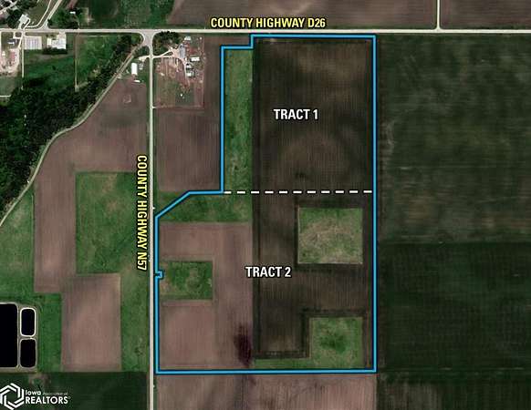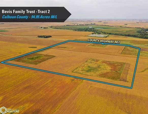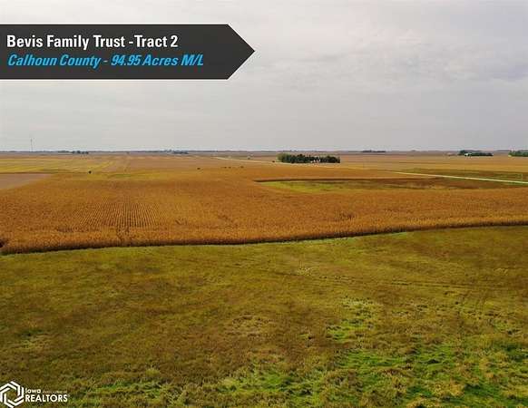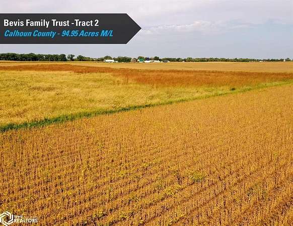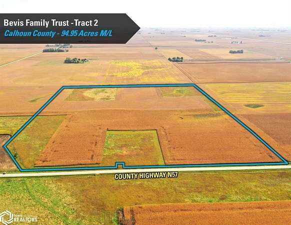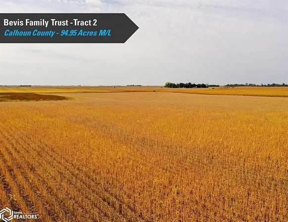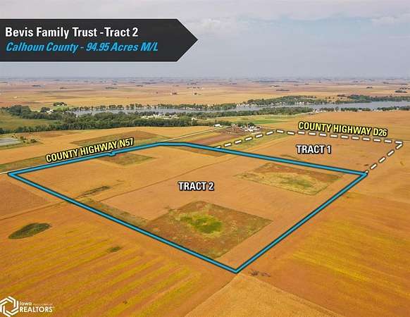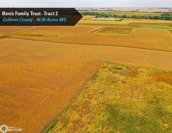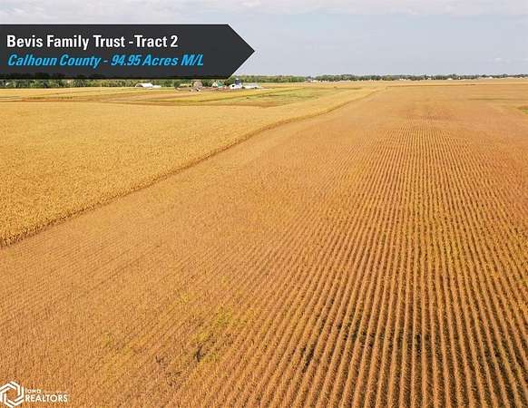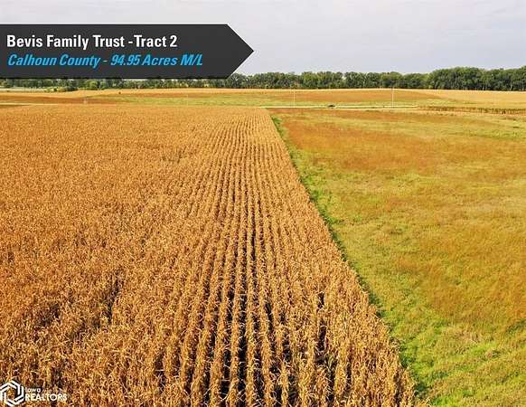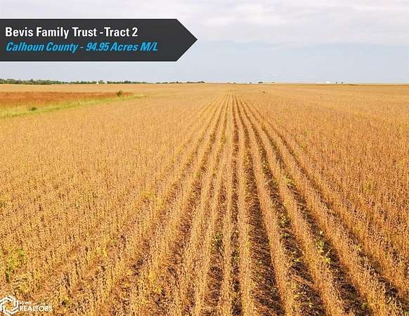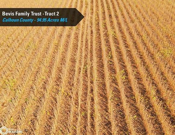 Calhoun County, Iowa Farmland Auction - Mark your calendars for Wednesday, November 19th, 2025, at 10:00 AM! Pleased to represent the Bevis Family Trust in the sale of their family farm located north of Rockwell City, Iowa, and just east of Twin Lakes, Iowa. The portfolio consists of 152.80 acres that will be offered as two individual tracts via public auction utilizing the "Buyers Choice" auction method. Tract 2 consists of 94.95 acres m/l (to be surveyed) with an estimated 94.57 FSA cropland acres and a CSR2 soil rating of 86.6. Prominent soil types include Clarion loam, Webster clay loam, and Canisteo clay loam. Of the cropland acres, there are approximately 27.70 acres enrolled in the Conservation Reserve Program (CRP). These acres carry an average CSR2 soil rating of 84.6 and would be conducive to farming. The balance of the tract consists of 66.87 cropland acres currently in a corn and soybean rotation. These acres have a CSR2 soil rating of 87.5. For the 2025 growing season, the west half of the farm was planted to corn and the east half was planted to soybeans. Farming rights are available for the 2026 growing season. The notch in the western boundary of the tract is owned by the neighbor to the north and that property's well is located on that parcel. An additional 0.06 acres were included in the original CRP acres for this tract, but will not be included once the acres are reconstituted with a new buyer. Drainage tile is on the farm.
