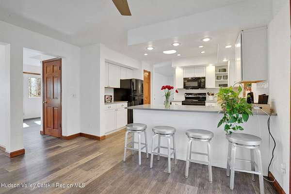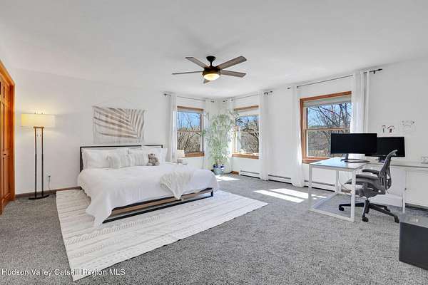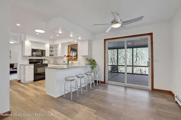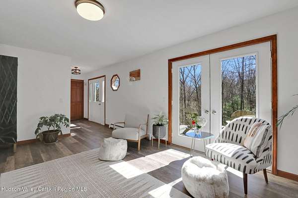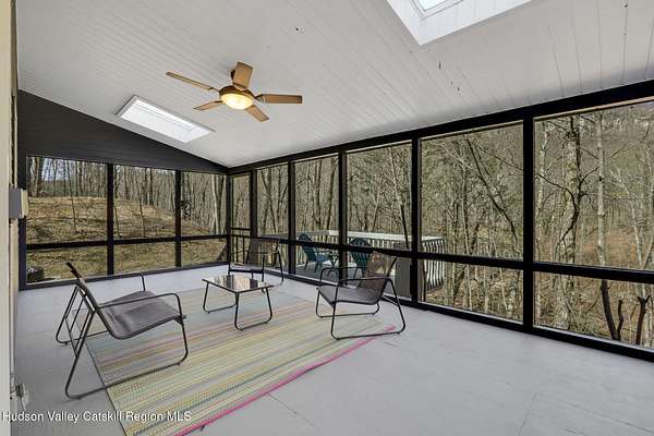 Privacy and tranquility await you at this nearly 3,000 square foot modern home on the foothills of the Shawangunk Ridge. This meticulously maintained home, perched on a knoll of your own features three large bedrooms, a living room with a fireplace, updated kitchen as well as a large screened-in back porch overlooking the sights and sounds of nature all around. The primary bedroom is oversized with a soaking tub, and a balcony of your own to surround yourself in nature from the moment you wake! The full unfinished basement offers endless possibilities for a recreation or fitness room and connects to an expansive 2 car garage with a two-story ceiling height, perfect for storing outdoor recreation equipment. Conveniently located just five minutes from the Village of New Paltz and six miles from the NYS Thruway. Prime Hudson Valley living, a stone's throw away from Mohonk Preserve and Minnewaska State Park. This property has been meticulously maintained and will not last long!