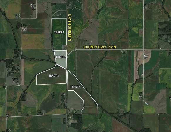 From Newton, Iowa: ravel east on North 19th Avenue East for 1.5 miles until reaching County Highway T12 East. Turn left (north) on County Highway T12 East and travel north for 4 miles until reaching East 44th Street North. Tract 2 will be located on the west side of the road at the intersection of County Highway T12 East & East 44th Street North. Look for signs.