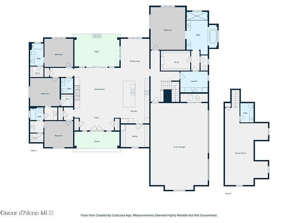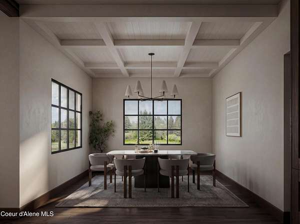 Set on five private acres in Oakridge Manor, Athol's premier estate-style community, this beautifully designed 3,568 sq ft rancher with bonus room blends modern Northwest architecture with the space and privacy North Idaho is known for--offering room for a future shop, outdoor living, and the freedom that acreage properties provide. Featuring 4 bedrooms, 3 full baths, 2 half baths, and a 3-car garage, the thoughtfully designed layout balances open gathering spaces with comfortable private retreats. At the heart of the home, the great room showcases vaulted ceilings and a gas fireplace with masonry surround and wood mantel, creating a warm focal point for everyday living. Expansive windows bring in natural light while framing the peaceful treed surroundings. The kitchen blends beauty and function with quartz or granite countertops, a full tile backsplash, and shaker-style alder or hickory cabinetry with soft-close doors and drawers. A stainless appliance package includes a range/oven, wall oven, wall microwave, refrigerator, and dishwasher, while thoughtful details such as a spacious walk-in pantry, refrigerator alcove, trash pullout beside the sink, matte black pull-down faucet, and garbage disposal enhance everyday convenience. The primary suite offers a relaxing retreat featuring a mudset tile shower with niche, apron-front soaking tub with tile surround, and quartz or granite countertops that continue throughout the home's bathrooms. The suite also enjoys direct access to the laundry room, adding convenience to daily living. The bedroom layout offers exceptional flexibility, including a Jack-and-Jill bathroom connecting two bedrooms, a third bedroom with its own private bath, and a large bonus room upstairs with its own half bath, ideal for a media room, guest space, or additional living area. Durable laminate/LVP flooring flows throughout the main living areas, while carpet adds warmth and comfort to bedrooms and bonus living space. Interior finishes include solid-core doors, modern flat-profile trim, matte black hardware, and drywall-wrapped windows for a clean and cohesive design. Outside, the home's LP SmartSide siding, architectural roofing, and striking black fiberglass windows create a timeless Northwest exterior designed to complement the surrounding landscape. A covered porch, concrete driveway, and welcoming entry walkway complete the exterior while leaving ample space across the acreage for future shop space, recreation, or animals. The home is served by a shared well system with a private cistern for each residence, providing reliable water storage while maintaining the spacious feel of an acreage community. Located just minutes from Highway 95, Silverwood Theme Park, Farragut State Park, and Lake Pend Oreille, Oakridge Manor offers the perfect balance of privacy and convenience, with Coeur d'Alene only a short drive away. With additional five-acre homesites available, Oakridge Manor offers a rare opportunity to enjoy space, privacy, and modern Northwest living in a thoughtfully designed community.