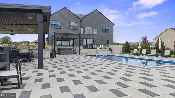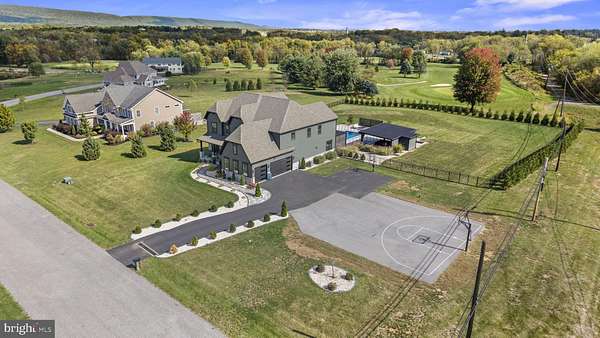 Welcome to 2 Freedom Ct where Luxury meets lifestyle in this stunning 5BR, 6BA custom home on 1.71 acres in Silver Spring Twp, overlooking Rich Valley Golf Course. Built in 2022, this home features a 2-story great room, gourmet kitchen w/ quartz counters & GE Cafe appliances, main-level en-suite, and a spa-like primary suite w/ gym, dual closets & deluxe bath. Finished LL w/ theater & rec room. Outdoor oasis includes saltwater pool, hot tub, cabana w/ full kitchen, fire pit, pizza oven & half-court basketball. 3-car garage, no HOA, CV Schools. Enjoy high-end finishes throughout, including 10' ceilings, coffered accents, custom built-ins, and smart-home upgrades. Designed for entertaining and everyday luxury, this home blends elegant indoor living with exceptional outdoor spaces in a peaceful, golf course setting.