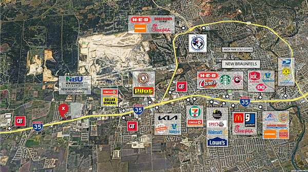 Presenting a rare opportunity to acquire a 2-acre parcel in the fast-growing New Braunfels market. This property boasts direct I-35 frontage with traffic counts of approximately 150,000 vehicles per day, offering unmatched visibility for future development. Sitting on a hard corner adjacent to the new New Braunfels Utilities headquarters, the site benefits from strong infrastructure support and a prime location near the area's growth corridors. Surrounded by dense residential developments and established neighborhoods, the property is ideally suited for commercial, mixed-use, or investment purposes. Directly across Marigold Way, a 1-acre corner lot is also available. Buyers have the flexibility to purchase the properties separately or combine them for a total of 3 acres, unlocking greater potential for larger-scale projects.