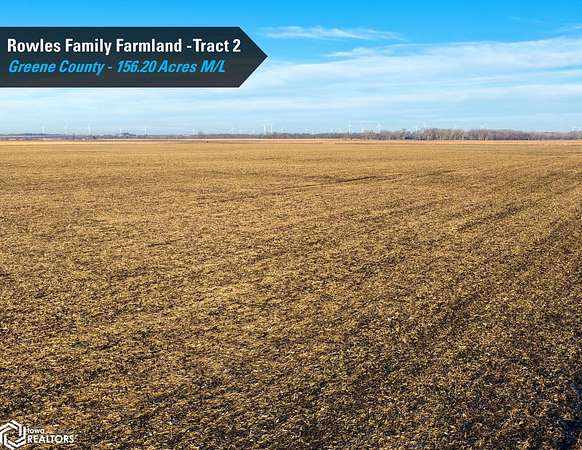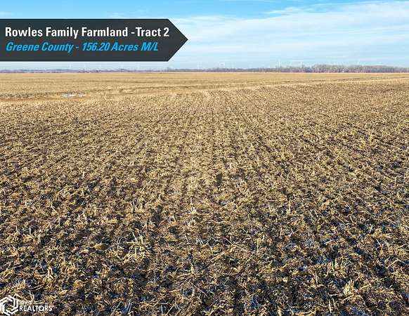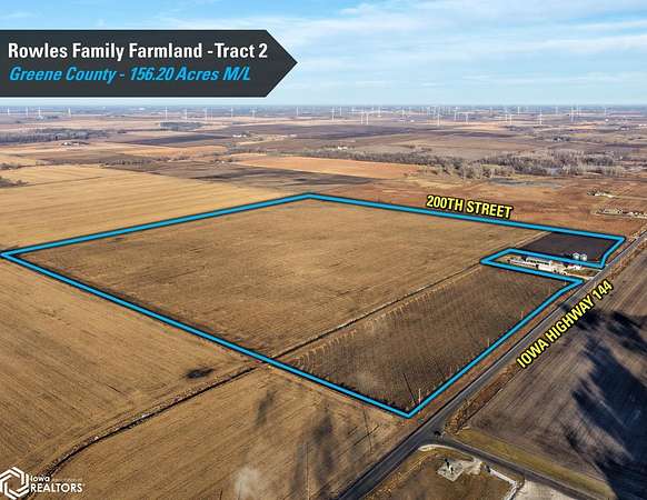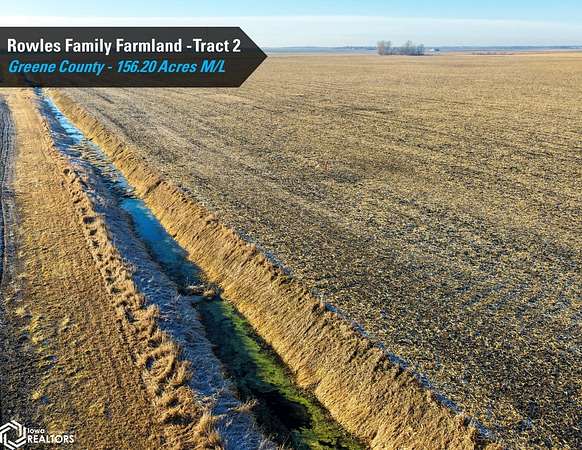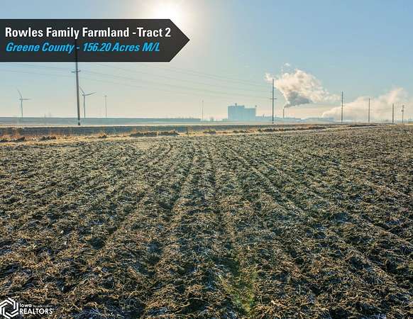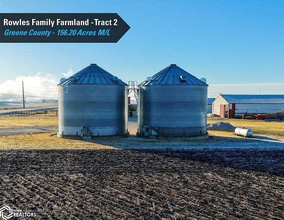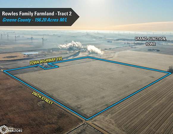 Greene County, Iowa Online Only Farmland Auction - Wednesday February 18th, 2026! I'm pleased to be representing the Rowles Family in the sale their family's 300 acres m/l. Offered as three individual tracts, these farms are located northwest and southwest of Grand Junction, Iowa in Sections 7, 20, and 29 of Junction Township, Greene County, Iowa. Tract sizes range from 63.80 acres to 156.20 acres and would make for great add-on tracts to an existing farming operation or an investment for the Buyer looking to diversify their portfolio or hedge inflation. Tract 2 consists of 156.20 acres m/l and is located just northwest of Grand Junction, Iowa. This tract includes an estimated 149.55 FSA NHEL cropland acres and a CSR2 soil rating of 61. Iowa Highway 144 runs along the eastern border of the tract, offering quick access to local grain markets. The farm also sits just across the road from the Louis Dreyfus ethanol plant. An open drainage ditch associated with Drainage District 169 cuts through the eastern half of the tract, with water flowing south off the farm. There are three drainage tile intakes located on the tract, suggesting drainage tile is present. Two Sukup grain bins built in 2012 are located on the tract and each hold an estimated 11,000+ bushels. The farm is leased for 2026 and Buyer will receive the total 2026 rental income of $36,450 paid in two payments. The two grain bins are leased through August 1, 2027, and the Buyer(s) will receive $4,540 on September 1.