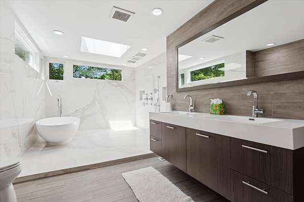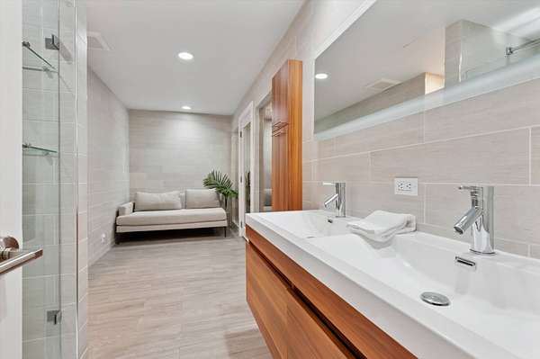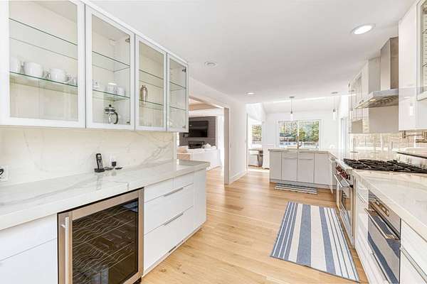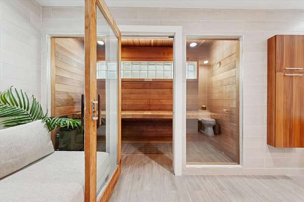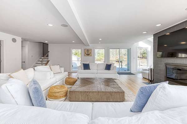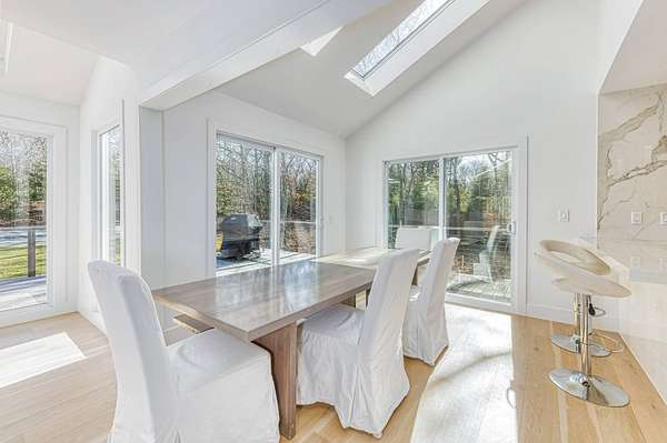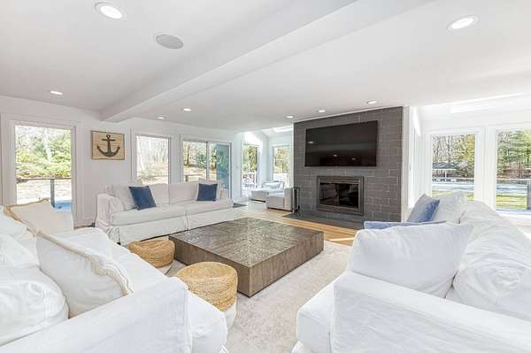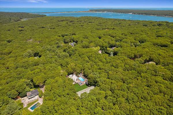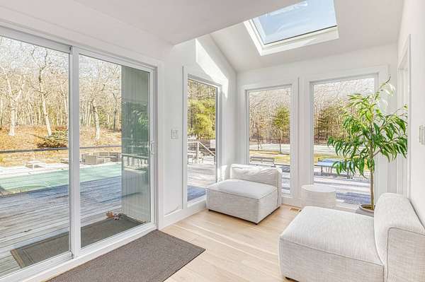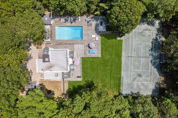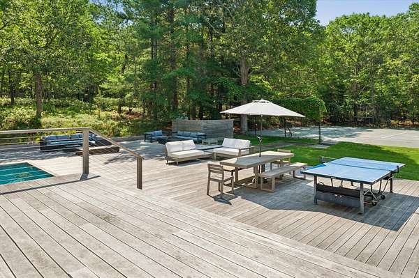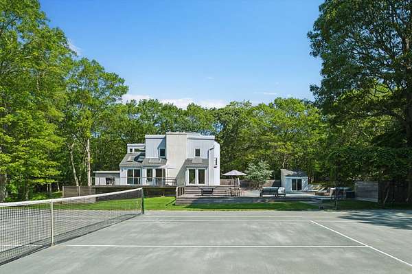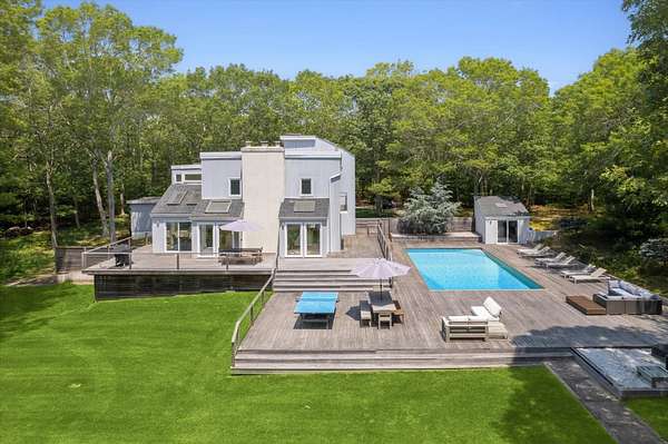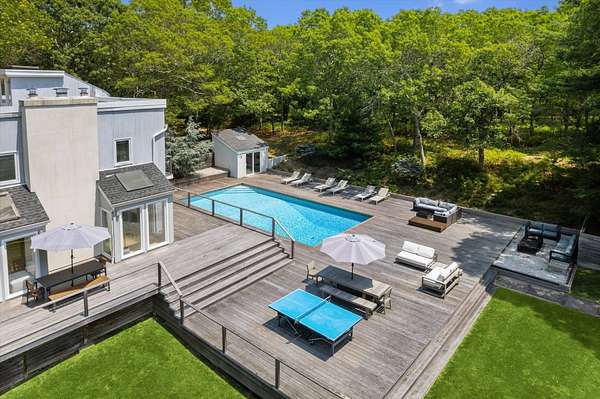 Experience luxury living in this renovated, resort-style mini estate, beautifully situated on a private 2+/- acre parcel in the prestigious Northwest Woods. Nestled on a quiet street with only eight homes, this secluded oasis is just minutes from the shops and beaches of East Hampton and the vibrant nightlife of Sag Harbor. Designed for both relaxation and grand entertaining, the property features nearly 5,000 sq. ft. of outdoor Mahogany decking, a heated pool, tennis court, fire pit, and landscape lighting-ideal for hosting a grand party or enjoying peaceful solitude. Inside, walls of glass flood the bright, open floor plan with natural light, highlighting a stunning Great Room with fireplace, state-of-the-art chef's kitchen, and comfortable seating areas. The 3,940+/- sq. ft. on all three floors, offers four bedrooms and four baths, including a luxurious primary suite with spa-like bath and private balcony, plus an upstairs guest suite with sauna and lounge. Additional features include a rooftop deck with sweeping views, a finished lower level with media room, wet bar kitchenette, and walk-out access to the backyard, as well as smart-home technology, indoor/outdoor Sonos, and high-end appliances. Stylish, functional, and move-in ready, this exceptional property combines privacy, modern convenience, and a strong rental track record-perfect as a personal retreat or entertainer's paradise.