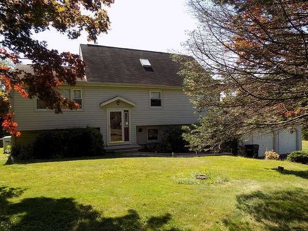 This in not a typical raised ranch. You must see it to appreciate the design, layout and features. On the main level you will find a living room, kitchen dining area with sliders to rear deck, two bedrooms, full bath and an office. In the office is a spiral staircase that leads to the 3rd bedroom. The lower level has a great room with laundry, rec/play room with fireplace or can be used as a 4th bedroom with full bathroom. Propane heat with central air. Solar system results in very inexpensive electric costs. Attached two car garage. Plenty of attic storage. Large level lot . This home has it all. Take a look!