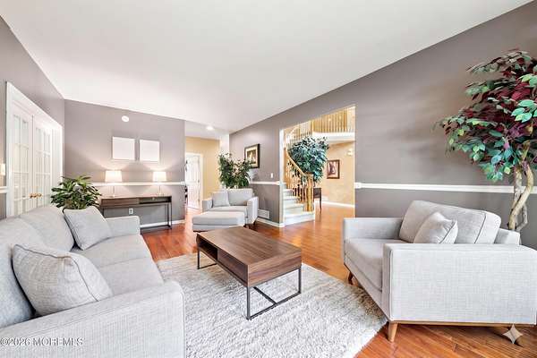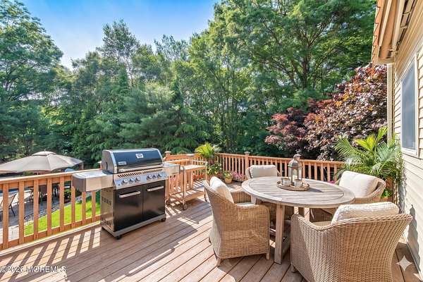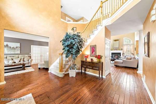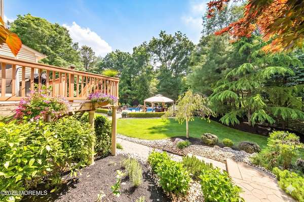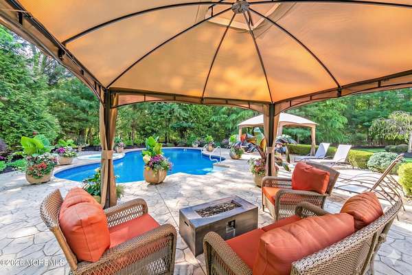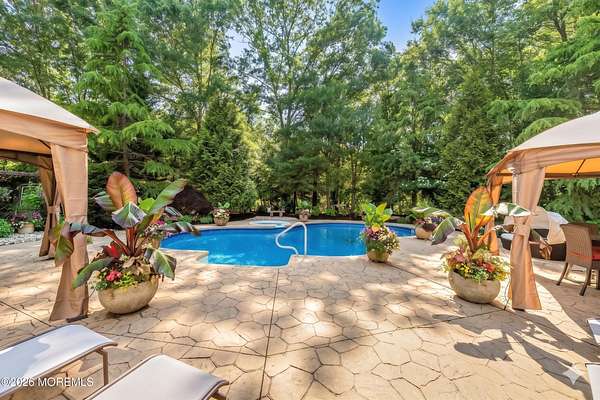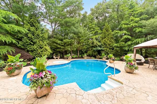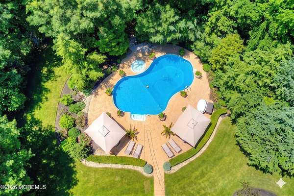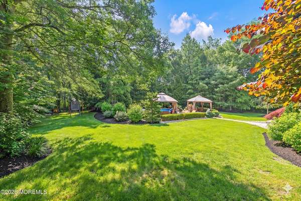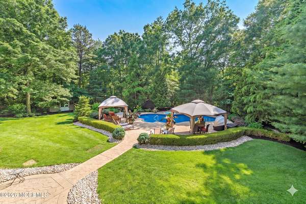 Unrivaled Scale and Curated Privacy! Welcome to 2 Mehar Court, a ''One of One'' residential masterpiece that offers the rare luxury of choice. While this 5,700-square-foot estate serves as an exceptional haven for quiet, everyday residential living, it remains perfectly poised for high-capacity entertaining on a grand scale. Nestled on nearly 4 acres in one of Jackson's most sought-after enclaves, the property unfolds with a sense of boundless space, moving naturally from its sophisticated interior to a private, park-like retreat that feels worlds away from the everyday. The Grand Arrival Upon arrival, you are greeted by an expansive two-story foyer that immediately sets a tone of refined elegance. The main level is defined by soaring 9-foot ceilings and a masterfully open layout, creating a bright and airy atmosphere that flows seamlessly throughout the entire first floor. This intentional design eliminates visual barriers, allowing light and energy to move freely across the formal living and dining spaces, resulting in a residence that feels both grand in scale and effortlessly open. The Heart of the Home The culinary center of the residence is a gourmet chef's kitchen, featuring premium granite countertops, high-end stainless steel appliances, and a spacious dinette for casual morning gatherings. Designed for the seamless host, the kitchen flows naturally into the formal dining room, providing an elegant and direct path for sophisticated dinner service. This space opens directly into the dramatic two-story family room, where a second-story balcony overlooks the hearth below. This intentional design creates a seamless dialogue between levels, allowing the home to feel boundless in scale yet remarkably connected and intimate. The Resort Grounds The true magic of this property lies in its ability to "morph" into a private escape. Transition from the dinette to a sprawling deck that overlooks your Resort-Style Oasis. Featuring a magnificent in-ground pool and professionally landscaped grounds, the 3.9-acre perimeter is bordered by natural greenery. It offers the option for tremendous privacy while remaining part of a peaceful, established community. Unrivaled Versatility in Design Offering an extraordinary 8-bedroom, 5-bathroom configuration, the estate's floor plan is a masterclass in spatial logic, designed to adapt to the most demanding lifestyle needs: The First-Floor Guest Wing: A rare, highly functional wing with two bedrooms, a full bathroom, and a dedicated sitting room--perfect for a quiet professional suite or private guest quarters. The Master Retreat: A haven featuring vaulted ceilings, a private lounge with a gas fireplace, and a massive walk-in closet. The spa-like ensuite features double sinks, a soaking tub, and a custom standing shower. The Walk-Out Basement: A fully finished lower level featuring a complete Mother-Daughter suite, providing independent living or a high-end entertainment hub with direct pool access. Additional Highlights Two-car garage and an oversized driveway for seamless hosting. Situated on a peaceful, quiet block that feels tucked away yet accessible. A legacy floor plan that balances open-concept luxury with the peace of a private haven. 2 Mehar Court is the definitive Jackson estate--offering the space to host the world, and the privacy to leave it all behind.