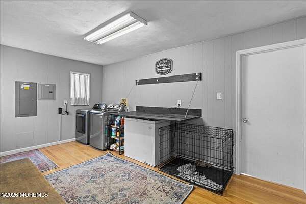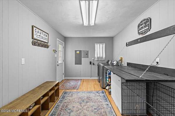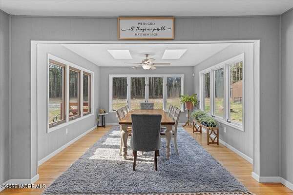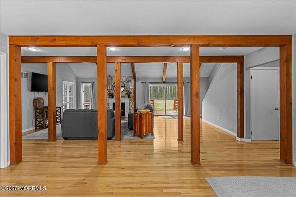 Set on a private road in the heart of Chatsworth and backing to the serene Franklin Parker Preserve, this expansive 5-bedroom, 3-bath home offers the perfect blend of space, privacy, and modern upgrades on 9.46 acres. Boasting 3,403 sq ft, the home welcomes you with solid wood flooring throughout, soaring ceilings, and abundant natural light. The stunning great room features a shiplap ceiling, electric fireplace with stone backsplash, and an oversized newer slider leading to a deck overlooking the peaceful wooded setting. The open-concept kitchen is designed for both function and style, complete with granite countertops, a center island, white shaker soft-close cabinetry, subway tile backsplash, pantry, custom crown molding, and a new dishwasher. The main level includes two spacious bedrooms, one with with double closets, a beautifully renovated full guest bath with tub, a dedicated office/bonus room with French doors, and an oversized laundry area with washer and dryer included. Upstairs, you'll find three additional bedrooms, all with generous closet space--two featuring large walk-in closets--and one with a fully renovated en-suite bath. The primary suite is a true retreat with a massive custom walk-in closet (safe excluded), a second closet, and a private bath with both a shower stall and soaking tub. Outside, enjoy the tranquility of nearly 10 acres with a new above-ground pool, a barn with electric, and a detached 3-car garage with storage room and fully owned solar panels servicing both the home and garage (garage conveyed as-is). Additional features include a pull-out generator for added peace of mind. A rare opportunity to own a spacious, upgraded home in a quiet, nature-filled setting--being sold as-is.