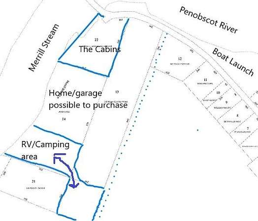 Turn key cabin rental business, RV lot or campsite, and 3 Amish-built cabins with over 600 feet of Merrill Brook stream frontage, which is 100' wide. Directly across from the cabins is a boat launch for the Penobscot River. These efficient year-round rental cabins are a popular destination for 4 season activities. Repeat clientele return year after year for fishing, boating, hunting, 4-wheeling, and snowmobiling with access to hundreds of miles of trails. Within a half hour to Bangor and 45 minutes to Greenville and Baxter State Park. The area is home to many nearby lakes. The lodge with approx 1.5 acres and 300' of water can be purchased separately but not on market at this time. See MLS 1568319 to purchase cabins without the RV lot. Please keep in mind that room count and total sq ft include all cabins. Call or text 207-944-8466 for more information.