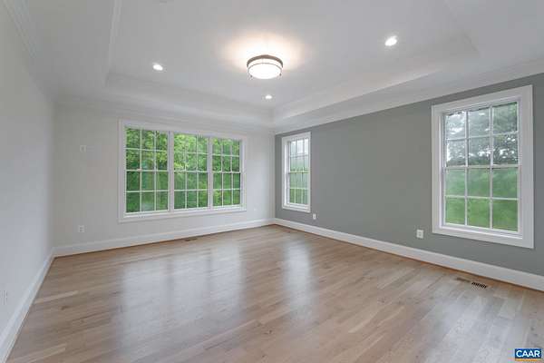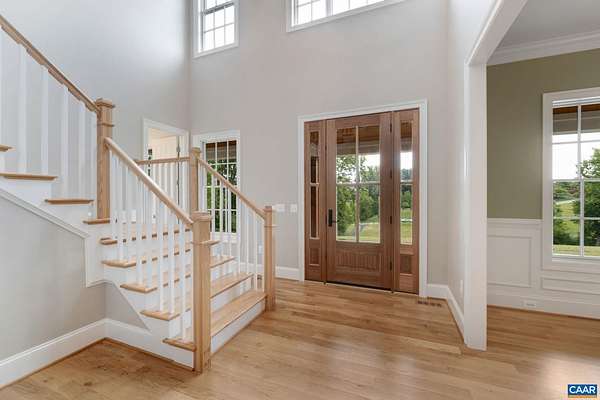 The Williamsburg plan is a proposed new construction custom home in the heart of Ivy just with partial mountain views. Over 5,000 square feet of open and modern living space across 3 floors. Enjoy this mostly wooded 6-acre lot with private access and no HOA just minutes to Charlottesville. This lot is the perfect balance of not feeling totally secluded but also maintaining a private rear view of nature. The home site is cleared and new well has be drilled and this lot is ready for your dream home. The selections can be similar to photos provided or finish to your own taste and budget. The builder has a model/design center nearby. Pool shown in rendering not included in the pricing.