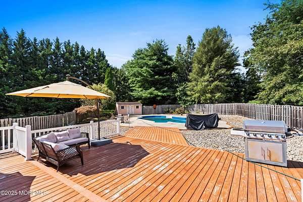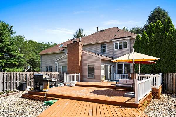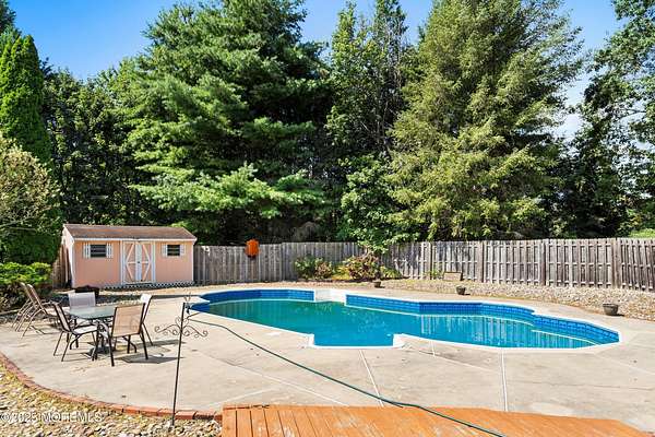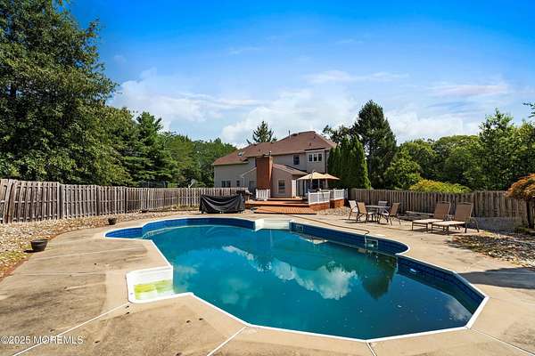 Welcome to your private retreat in the heart of desirable Millstone Township! This spacious 5-bedroom, 3.5-bath home sits on over 2 serene acres, offering the perfect blend of comfort, elegance, and versatility. The property features a full in-law suite with its own separate entrance, kitchen, living room, dining area, and a generously sized platform bedroom with a private bath. This bright, open floor plan is designed for both everyday living and entertaining. The sun-filled great room flows effortlessly onto the deck and overlooks the sparkling in-ground pool The kitchen features granite countertops, stainless steel appliances. A flexible office or playroom just off the kitchen is framed by French doors that open to a cheerful sunroom, perfect for enjoying your morning coffee or relaxing with a book. With a transferable home warranty for peace of mind, this home is move-in ready and waiting for its next chapter.