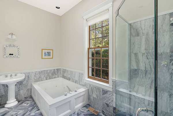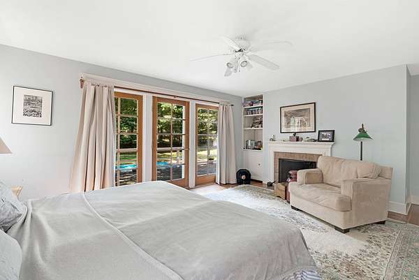 Don't miss this exceptional opportunity to live on a picture-perfect block in East Hampton's prime Northwest Woods. Set on three private, parklike acres in Grassy Hollow Estates, this stately Arts & Crafts style Post-Modern offers 3,000+- square feet of soaring architecture, abundant natural light, and gracious living just minutes from Sammy's Beach, Cedar Point Park, East Hampton Village, and world-class ocean beaches. A dramatic double-height foyer makes a striking first impression, leading into a sun-filled great room anchored by a grand fireplace, framed by walls of glass, and lined with six farmhouse-style French doors that open to the expansive backyard and 20' x 40' heated in-ground pool. Designed with entertaining in mind, the open-concept kitchen flows seamlessly into formal living and dining areas, creating effortless indoor-outdoor living. The spacious main-level primary suite features a newly renovated marble bath with soaking tub and shower, a large walk-in closet, a private boudoir with vanity, and the second of the home's three fireplaces. Just off the great room, a charming windowed den with the third fireplace provides a cozy retreat or ideal work-from-home space. A full bath and powder room complete the main level. Upstairs, two oversized guest bedrooms offer walk-in closets and share a full bath (ensuite to one), while the bonus room above the garage can easily be converted to a legal 4th bedroom as the home was built with a 4-bedroom septic system. The 1,754+- sq. ft. lower level offers untapped potential-ready to be finished; it will expand the home's total living space to nearly 4,700+- sq. ft. On a lot of this size and privacy, you can expand the house up to 10,000 sq. ft. and add your own basketball and pickleball courts, an increasingly rare opportunity in today's East Hampton market. Offered as is, 2 Old Hollow Lane presents a rare chance to update or reimagine a home with excellent bones, dramatic volume, and true architectural presence-all on a prime parcel in one of East Hampton's most desirable neighborhoods. A must-see for savvy buyers, investors, and builders seeking privacy, scale, and upside potential in the heart of the Northwest Woods. Listing ID: 919708