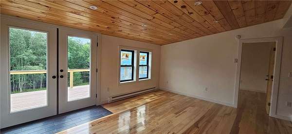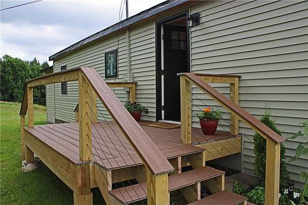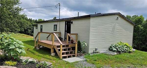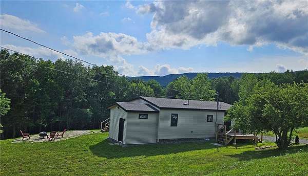 BRING YOUR FRIENDS, BRING YOUR FAMILY, there's lots of room in this 2246 sqft modular home on 5.22 acres, completely remodeled in 2025. Sited on a private lot adjacent to DEP land, the open plan layout offers a Great Room including kitchen, dining area and living room, plus 2 or 3 bedrooms on the main level and two full baths; with a Family Room, two more bedrooms, a laundry room/bathroom (needs your finishing touches) and a utility room on the lower level. Now, here are the details. The entire home was stripped down to the studs and rafters--R-21 insulation in the walls with plywood and zipboard; R-30 in the floor. There are hickory floors throughout the main level, with tongue and groove pine ceilings. The Great Room has an entirely new kitchen, with extensive Kraftmaid cabinets, quartz counters, and stainless steel appliances and is open to the Living Room and Dining area. This area is nice and bright, with French doors opening onto a large deck and a set of double hung windows. The primary bedroom has its own full bath with tub and shower, the second bedroom includes a large closet, and the third room could serve as an office, den or even small bedroom, but does not have a closet. There is also a second full tiled bath on this level. A short walk downstairs brings you into a large Den or Family Room, with another two bedrooms (with closets), a laundry room/bath which needs to be finished and a handy utility room. This is an all-electric house and includes an EV charger for your car. The land is really special. There is a nice stone patio with firepit on the upper part of the lawn, and you overlook mature woods with mountains in the distance. However, a short walk down a charming path through those woods will bring you past the DEP land adjoining you on one side to a stunning private meadow which appears to be a spectacular potential pond site. Imagine a secret swimming hole on your own property. Convenient to Margaretville, with easy access, private and all newly renovated! This is a great opportunity for the right buyer!