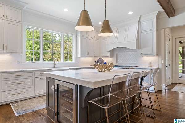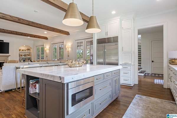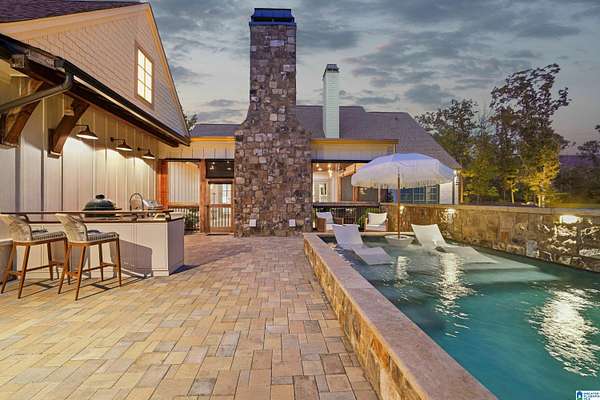 Elevate your lifestyle w/everyday luxury at 2 Pinehurst Green, a comfortably elegant estate where timeless architecture meets resort-style amenities. This customized Southern Living open concept plan greets you w/newly added entrance w/oversized gas lanterns, generous driveway w/all main level parking & 3-car garage, artful landscaping sets the tone for the sophistication within. Generous owner's suite, 2nd BR on main w/full BA, fine finishes throughout. Designed for seamless indoor & outdoor relaxation & entertaining, the outdoor oasis features a spacious screened porch w/stone FP, heaters & fans, then walk out to the newly added state of the art infinity-wave pool w/tanning ledge, & a built-in outdoor chef-worthy kitchen. Beyond the pool is a hardscape fire pit w/gas line & gas torches & plenty of room to entertain on the 1.9 acre lot. Every detail has been meticulously curated to create a private sanctuary just minutes from Birmingham's finest schools, shopping, dining & golf.