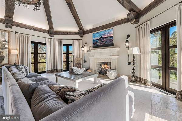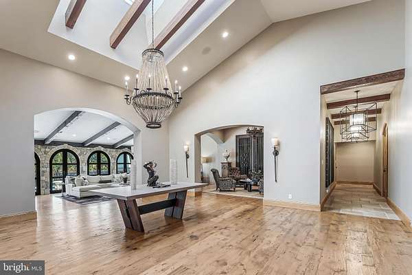 Nestled on over two private acres at the end of a cul-de-sac, 2 Piney Meetinghouse Court is a masterfully reimagined estate that evokes the warmth and craftsmanship of the Tuscan countryside. This one-of-a-kind residence, renovated by RAD Construction, offers more than 10,500 square feet of finely curated living space across three expansive levels, featuring 6 bedrooms, 6 full baths, and 3 half baths. From the moment you arrive, the property makes an unforgettable impression. A stone-clad covered Porte Cochere with custom designed front door and circular driveway, set the tone for the elevated interiors that follow. Inside, the impressive grand Foyer and Gallery with 17-foot ceilings introduce an open floor plan designed for both elegant entertaining and effortless everyday living. The main level offers a sophisticated Dining Room with wood beams and a gracious sun-filled Living Room opening to a spacious stone Terrace with views of the estate grounds and a wood-burning fireplace. Adjacent to the Living Room is a Tasting Room with a glass enclosed, temperature-controlled Wine Room, accommodating 1300 bottles. At the heart of the residence is the stunning gourmet chef's Kitchen open to the Family Room, featuring 19-foot ceilings and architectural wood beams, an awe-inspiring space and true centerpiece of the home. The Kitchen is outfitted with top-tier appliances, bespoke cabinetry, and an oversized island perfect for gatherings. The kitchen flows seamlessly into an impressive Family Room. Rich hardwood floors, designer lighting, iron accents and refined finishes enhance every corner. A separate wing of the main level features the Primary Suite which serves as a serene retreat, complete with a spa-inspired Bath and a custom oversized Dressing Room. An additional Bedroom Suite, a private Study or Home Office, a Powder Room and Mudroom complete the main level. Upstairs, three beautifully appointed bedrooms and two Full Baths provide comfort and privacy. The walkout Lower Level transforms into an entertainer's haven, featuring a home theater, a fully equipped fitness room, a sixth Bedroom and adjacent Full Bath, a Recreation Room and Lounge with a built-in Bar and a dedicated Arts and Crafts Studio. Outside, an exceptional private oasis awaits. A resort-style freeform Pool with built-in Spa, expansive covered and uncovered stone terraces with firepit, and a lighted Sport Court are all framed by mature trees and meticulous landscaping. An enclosed pool house, complete with a full Kitchen, and a separate Dressing Room, and sixth Full Bath, offer seamless support for outdoor living and entertaining. A rare fusion of Italian inspiration and East Coast sophistication, this estate is a true standout for those seeking an elevated and extraordinary lifestyle.
