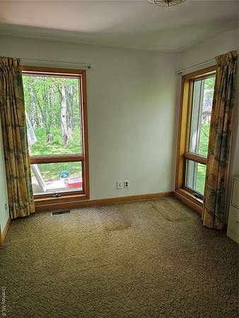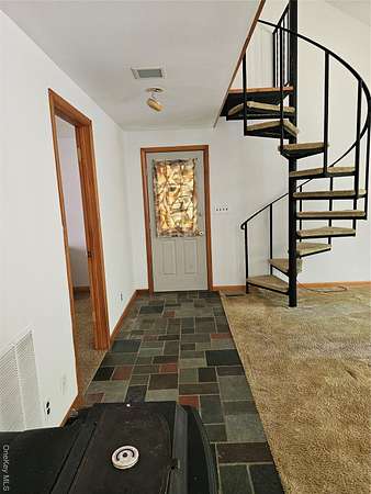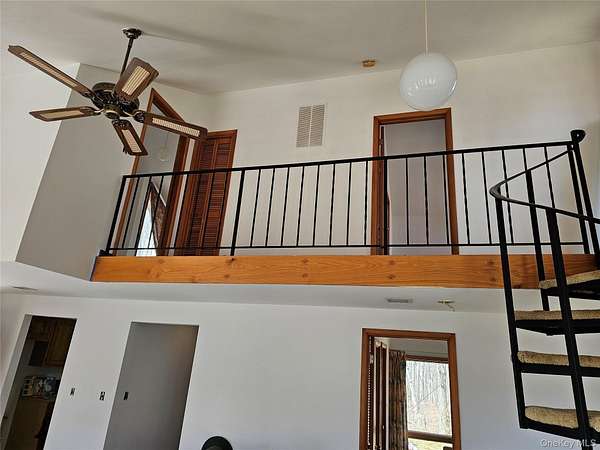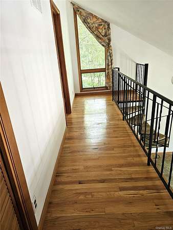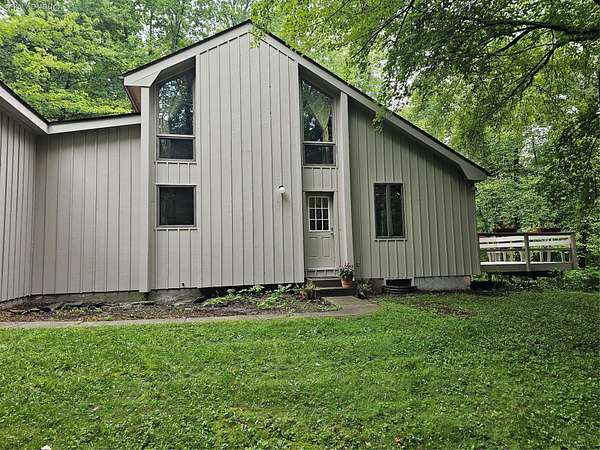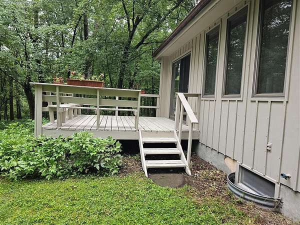 Welcome to your private retreat, complete with 5+ acres of nature; with a new improved price! The contemporary home features 3 bedrooms and two full baths. The living room is a flexible space with dining area options, as well as a wood-burning stove perfect for cozy winter days. . A wall of windows invites you to seasonal views and outdoor activities, while the deck off the living room is ideal for morning coffee or evening views of the night sky. The second floor features 2 bedrooms, with ample closet space and newly renovated full bath. A 2-car garage and full basement are perfect for extra storage and workshop hobbies. The high-fenced, enlarged garden, perfect for green-thumb enthusiasts, awaits your ideas and visions. But wait, there's more...An additional feature of this property is a large barn with hayloft and electric which could be used for family parties and gatherings! Please see updates on separate document.