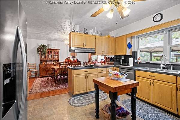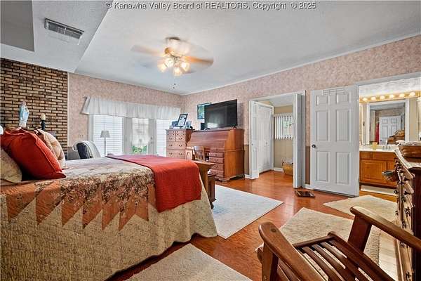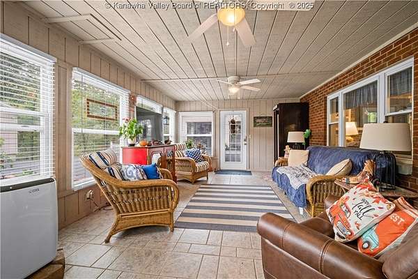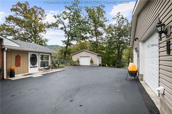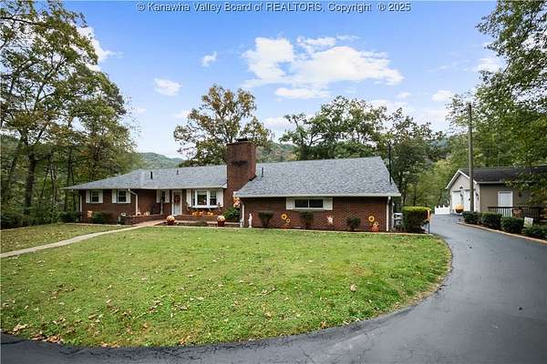 West Virginia Living at its finest! With 3.7 acres situated moments from beautiful Kanawha Falls and New River Gorge National Park, this four bed, three bath, one level brick ranch will be someone's dream home. Remarkably finished with all new appliances, updated fixtures, tiled bathrooms, and original hardwood floors throughout. Master bedroom contains full en suite bathroom and walk-in closet. Accompanied by detached three car and one car garages with built in workbenches, cabinetry, 220 watt electric supply, and remote garage doors. Outdoor space includes a secluded, fenced, and flat area with stunning views of the Kanawha River and the bald eagle inhabited hills surrounding it. Maintained with love by its current owner. Brand new roof with transferable warranty. New HVAC. New high tech pellet stove. Newly sealed blacktop road.
