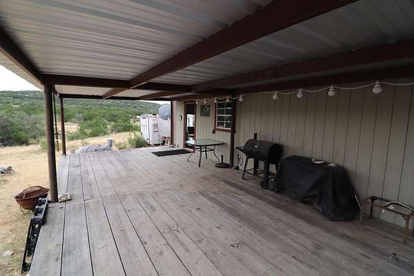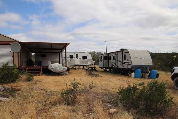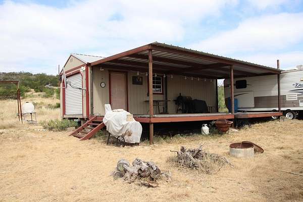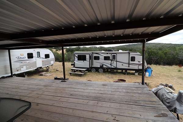 Buffalo Bend Ranch. Listing #39. Located in western Edwards County, Texas. Less than 30 minutes from Rocksprings with very good, easy access via short drive down well-maintained county road and short run of easement road. Variety of terrain with big level valley in the middle and two large hills providing panoramic views . Minimal rocks and good soil. Moderate to heavy cover making great habitat and vegetation for the wildlife. Nice trail system off main road leading to 2 blinds and 2 feeders strategically placed on the property. Boundaries are well defined with 2 sides low fenced and 2 sides not fenced. Larger low fenced neighbor along the northern boundary of the property. 34x12ft 1/1 cabin nicely finished on the inside; half is storage area. Water well, electric and septic. Covered front deck for relaxing and enjoying the early mornings and late afternoons. 31ft 2016 Shasta trailer in good condition. Watering troughs for wildlife. Wildlife includes axis, whitetail, turkey, hogs, occasional elk in the area. Exempt taxes Listing #39