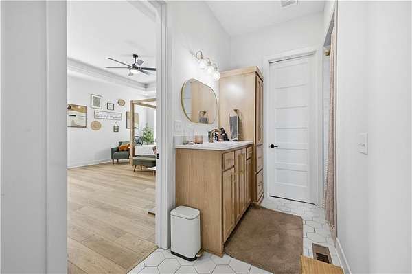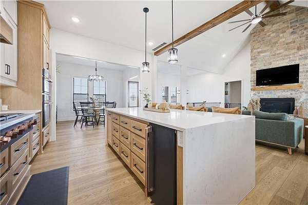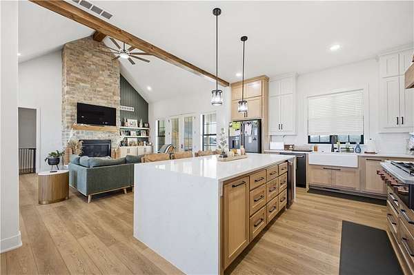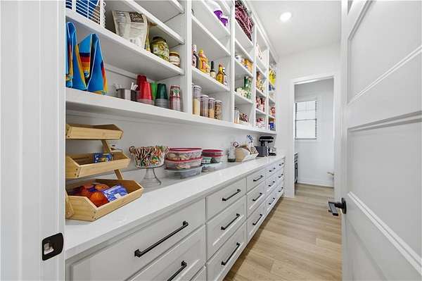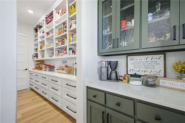 - Ceiling Fan(s), Custom Cabinets, Kitchen Island, Pantry, Vaulted Ceiling(s), Walk-In Closet(s)
