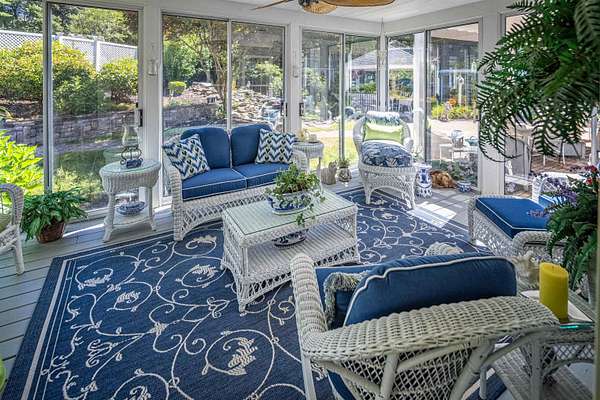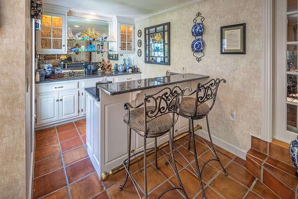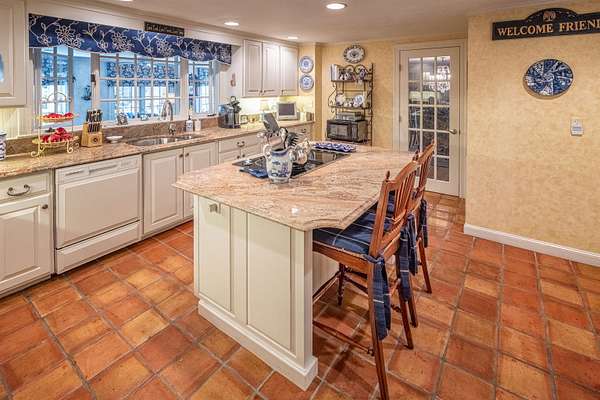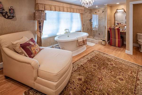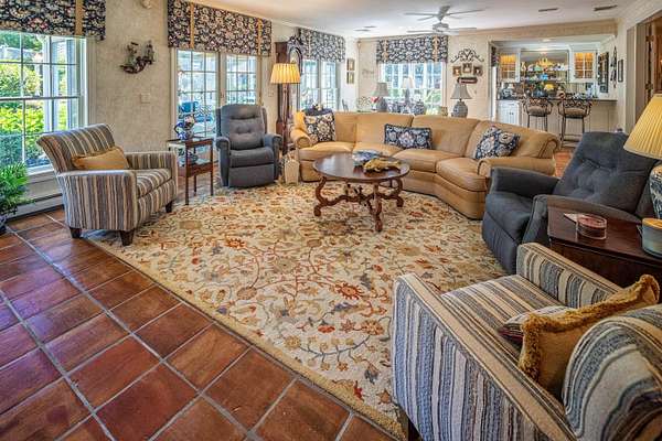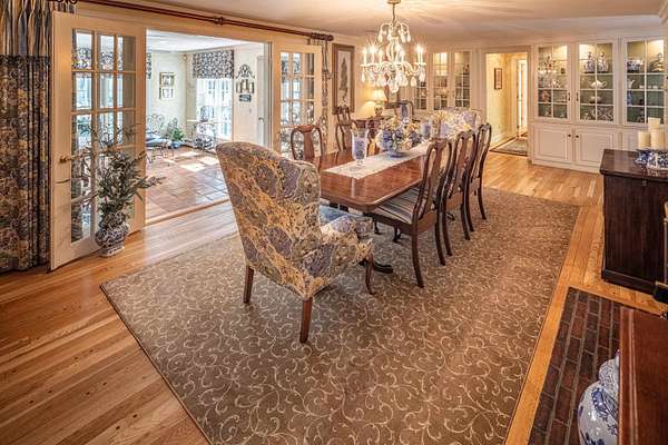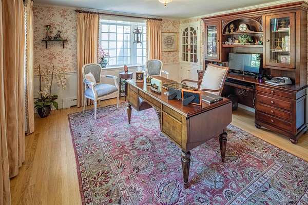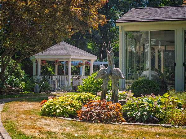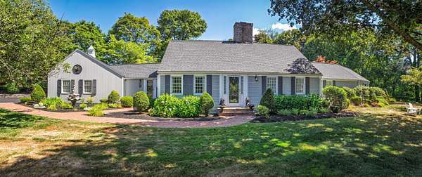 Set on 1.6 acres of meticulously landscaped grounds, this custom-built Royal Barry Wills style Cape offers an unparalleled blend of timeless craftsmanship, sophistication, and modern comfort. Brick walkways wind through lush gardens enhanced by waterfalls, fountains, gazebos, and a private hot tub, creating an enchanting outdoor oasis perfect for entertaining or peaceful retreat. Inside, refined details abound. The home showcases four wood-burning fireplaces, rich wainscoting, and beautifully crafted built-ins throughout its expansive floor plan. The heart of the home is a spectacular 600+ sq ft Great Room with vaulted ceilings and walls of glass leading to the glass sunroom, overlooking the grounds. A formal dining room with fireplace, a warm and inviting living room, a distinguished home office, and a spacious laundry room with abundant storage reflect both elegance and functionality. The crown jewel of the residence is the breathtaking 1,200+ sq ft primary suite. With a vaulted ceiling bedroom, an enviable walk-in dressing room with custom cabinetry, and a spa-inspired bath featuring a soaking tub, tile shower, built-ins, and bidet, this suite is designed as a sanctuary of comfort and luxury. The second floor provides two private bedrooms and a generous full bath, while the finished lower level extends the living space with a playroom, kitchenette, fireplace, two flexible rooms, and a half bath with potential for full conversion. Home will be sold furnished inside and out!