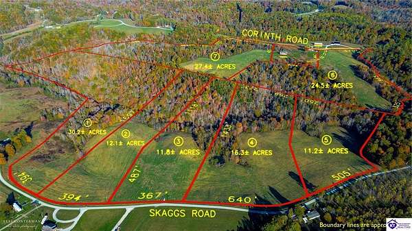 This beautiful farm checks a lot of boxes, this is one you need to see to admire the beauty of it. This farm offers multiple potential building sites, recreational land, hunting ground, pasture land, and more! The land on Skaggs rd has woven wire fence along the road way. This particular tract is tract 2 and is 12.1 +/- acres. This tract features a potential building site and has open ground and wooded ground. In total there is 133+/- acres divided into 7 tracts. 5 tracts with road frontage on Skaggs Rd. 2 tracts with road frontage on Corinth rd. County water is available on both roads. Don't miss out on this one! Conveniently located in-between Hodgenville and Campbellsville!
