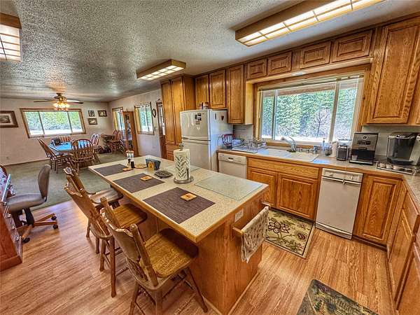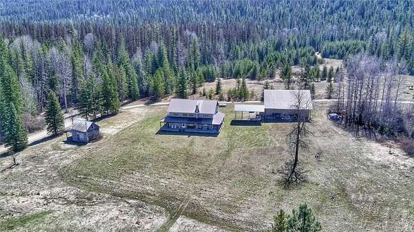 Discover the unparalleled charm of this private 28-acre Montana retreat, offering a rare blend of comfort, functionality, and wide-open space. The 2,944 sq ft, 4-bedroom, 2-bath farmhouse is thoughtfully positioned to take in stunning mountain views from the covered wraparound porch-an ideal spot to relax and take in the quiet, free from highway or train noise. The level, usable land features a beautiful mix of small ponds, open pasture, meadows, and mature trees, creating an ideal setting for animals, recreation, or a self-sustaining homestead. Abundant wildlife and expansive views enhance the sense of seclusion, while a strong 30 GPM well supports all your needs. This property is truly turnkey, being sold fully furnished and equipped, so you can start enjoying it right away. A 40' x 60' insulated shop with two 14' doors includes a separate office area with a stove-perfect for projects, storage, or business use. The guest cabin, tucked back into the trees, offers a peaceful and private retreat for visitors or extended stays. A carport with full RV hookups adds even more flexibility. With no covenants or restrictions, the possibilities are wide open-bring the animals, build additional structures, or simply enjoy the land as it is. This exceptional property invites you to fully embrace the freedom, privacy, and lifestyle Montana is known for. Bring the animals & enjoy the peace!