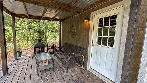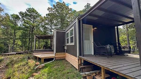 Charming Mountain Top Retreat on 7.33 Acres in the Jackfork Mountains Discover your private oasis at 0000 Wagonwheel Rd, Pittsburg, OK 74506. Nestled in the heart of Oklahoma's Jackfork Mountains, this 7.33-acre property features a cozy 1-bedroom, 1-bathroom cabin is perfect for a weekend retreat, hunting base, or serene full-time living. Surrounded by lush mountain timber and bordering thousands of acres of Choctaw Indian Reservation land, this property offers unmatched seclusion, breathtaking views, and abundant wildlife, including large whitetail deer, turkey, and even the occasional black bear. Conveniently located just 2 hours from Tulsa and 2.5 hours from Dallas, this mountain escape combines accessibility with the tranquility of nature. The charming cabin is designed for comfort, featuring front and back decks ideal for enjoying morning coffee or cozy evenings by a fire. A rainwater catch system provides water, complemented by a scenic pond with a waterfall rock feature just off the back deck. Note: the pond is currently low due to recent droughts but refills quickly with rainfall. Equipped with all electric and septic systems, the cabin blends rustic charm with modern conveniences. Accessible via a well-maintained county road with minimal traffic, this property ensures peace and privacy. A hunter's paradise, the land is teeming with wildlife, making it an exceptional hunting property despite its modest size. Whether you're seeking a quiet retreat or an outdoor adventure, this Jackfork Mountain gem delivers it all.