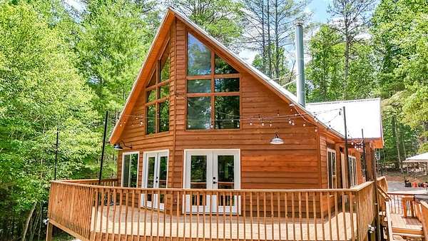 Nestled on 2.77 private acres and surrounded by the quiet beauty of nature, this fully renovated 6-bedroom, 3-bath chalet-style retreat offers the perfect balance of mountain charm and modern comfort. Thoughtfully updated from top to bottom, every detail has been considered. Inside, soaring cedar ceilings and an open, light-filled floor plan create a warm and inviting atmosphere, anchored by the stunning floor-to-ceiling windows in the living room that frame the outdoors beautifully. With two brand-new full kitchens, the layout offers incredible flexibility -- ideal for entertaining, hosting extended family, multi-generational living, or maximizing rental potential. Major upgrades provide true peace of mind, including a new roof, high-efficiency heat pump systems, water softener, complete 400-amp electrical rewire, new windows (with the exception of the statement living room windows), and new doors throughout. Outdoor living is just as impressive. A brand-new deck with a private hot tub invites you to unwind, while the custom firepit with stadium-style seating creates the perfect gathering space under the stars. A newly installed parking pad with EV charging adds a thoughtful touch of modern convenience. Located just 25 minutes from Blue Ridge and Murphy, NC, and only 20 minutes from McCaysville, you'll enjoy easy access to dining, shopping, and outdoor adventure -- all while coming home to your own private mountain escape. Whether you're searching for a full-time residence, weekend getaway, or turnkey investment property, this chalet offers versatility, comfort, and timeless mountain appeal.