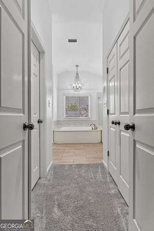 - Double Vanity, Entrance Foyer, High Ceilings, Separate Shower, Soaking Tub, Walk-In Closet(s)