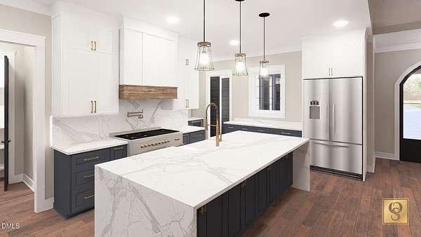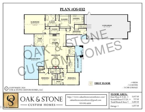Custom ranch by multi-award-winning Oak & Stone Custom Homes on a private 1.88-acre pool-ready lot. This luxury residence offers four bedrooms and four 1/2 baths, including a first-floor owner's suite with a spa-inspired dream bath featuring a surround walk-in shower with wet room, freestanding tub, and expansive custom closet. Two additional first-floor bedrooms include ensuite baths and walk-in closets. The open, sun-filled layout showcases hardwood-style flooring throughout, a bright gourmet kitchen with a massive island, walk-in pantry/prep area, custom ceiling-height cabinetry, soft-close features, stainless appliances, gas range with pot filler, and farmhouse sink. Enjoy seamless living with an informal dining area, great room with custom gas fireplace and built-ins, dedicated office, and mudroom. Upstairs offers a spacious bonus/4th bedroom with full tiled bath and a large walk-in attic ready for future expansion. Outdoor living shines with a stately front porch, screened porch with fireplace, oversized three-car epoxy garage, and a beautifully private backyard. Custom details throughout--truly exceptional craftsmanship