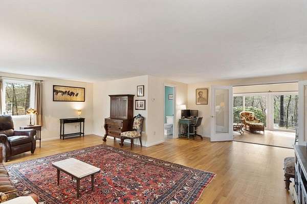 Situated on a dead-end street, 1 mile from Westford Academy & a few minutes to Westford's thriving commercial center, this expanded split-level home offers an ideal blend of privacy, space, & convenience. An open-concept, generous living room opens to a well-appointed kitchen with granite countertops and tailor-made cabinetry. A bright, 4-season sunroom, with floor to ceiling windows affords beautiful views of the entire yard. It is the the place to be on hot summer nights or in the winter, warmed by a new gas stove. Two bedrooms and a 2nd full bath are located down the hall, for privacy. The lower level offers a 3rd bdrm, a sizable bonus room perfect for a gym or playroom, & ample storage. Family or friends will delight in the inground, gunite pool, or maybe prefer to watch from a drier distance on the deck. Other highlights include hardwood floors throughout 1st floor, & major updates: new furnace, water heater, and refrigerator, plus septic system & roof (2010).